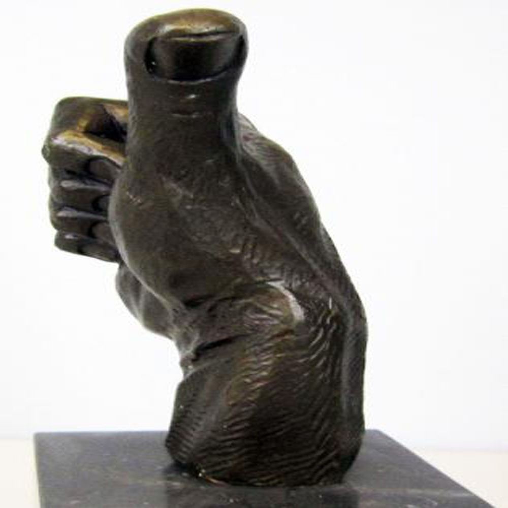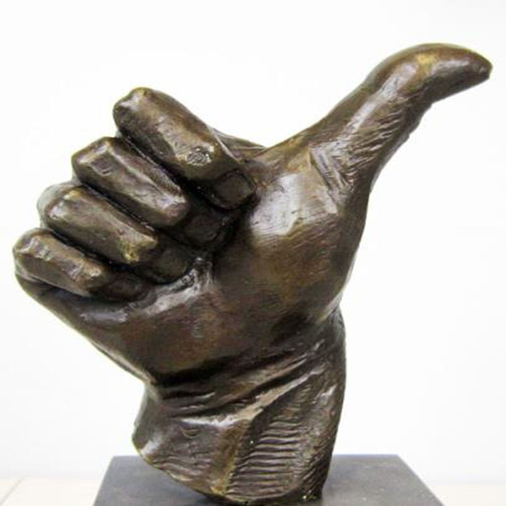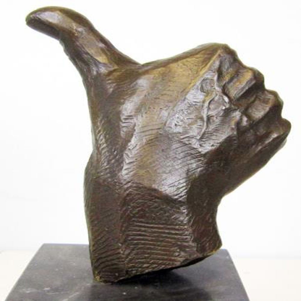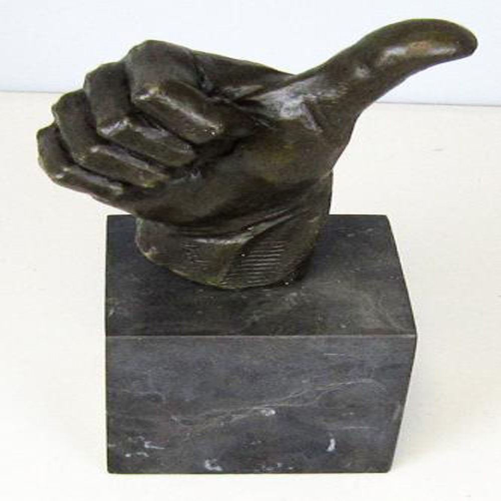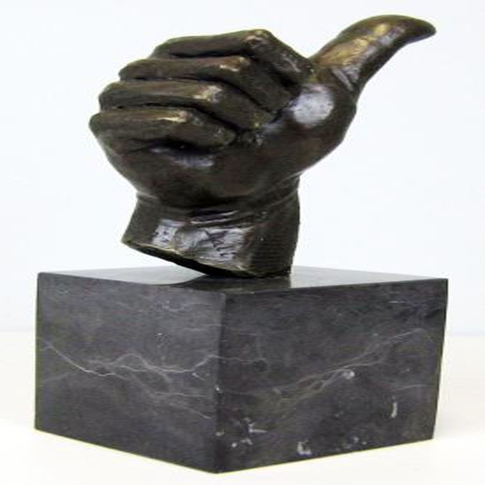 Thumbs up Bronze Sculpture is the perfect gift for a job well done or to show your appreciation to someone who deserves praise. Handcrafted and casted using the Hot cast method and Mounted on a Marble Base. Bronze Dimensions with Marble Base: Height 11 X Width 7 inches. Weight: 9 LBS.