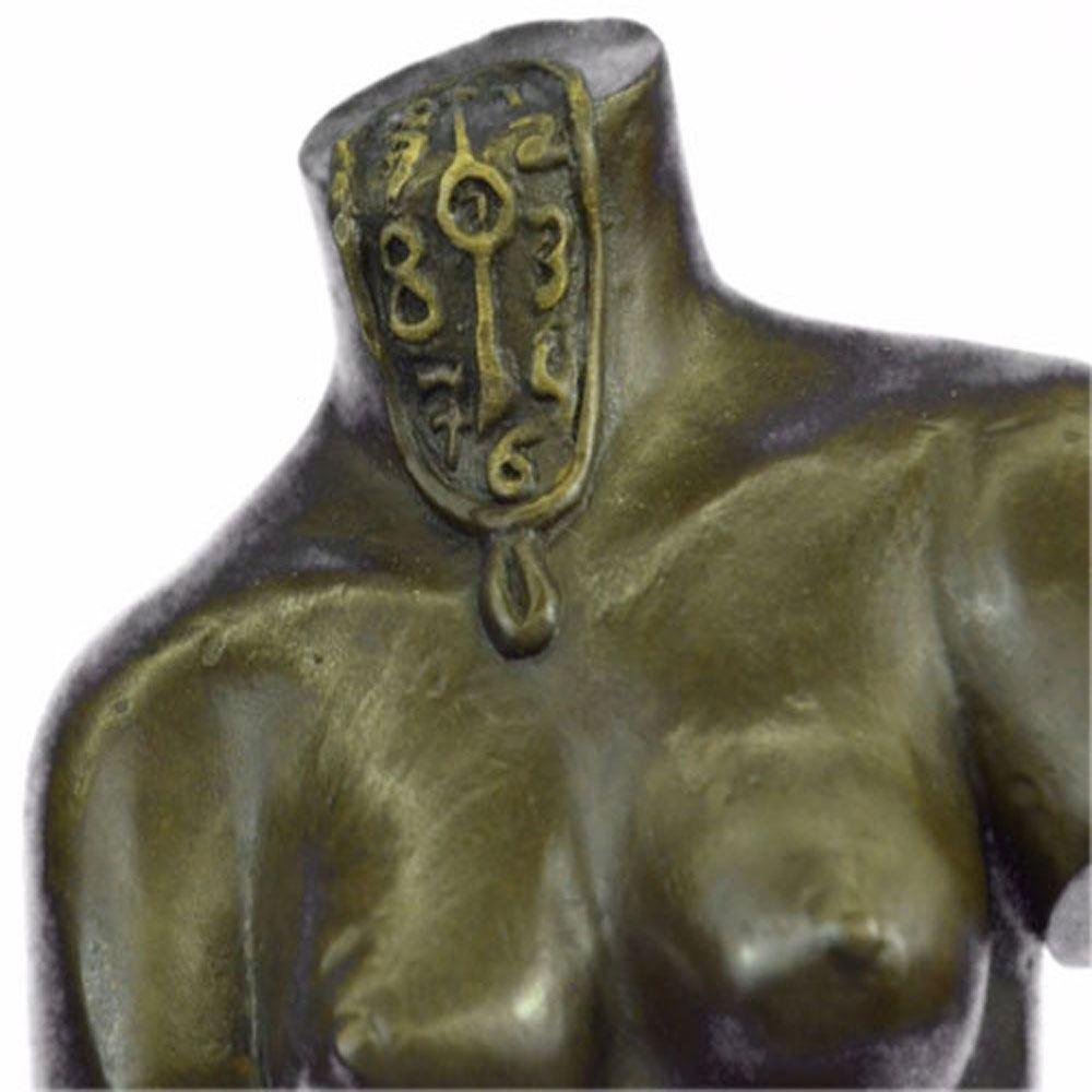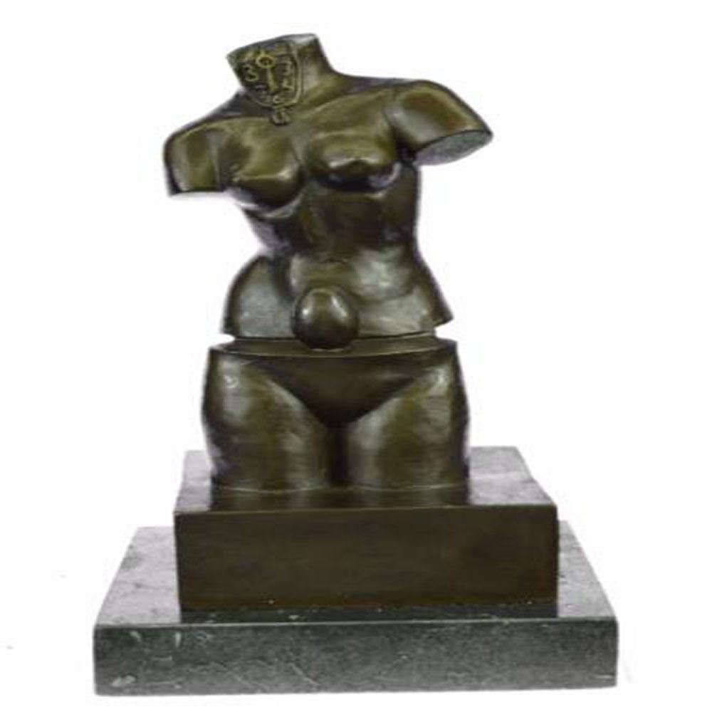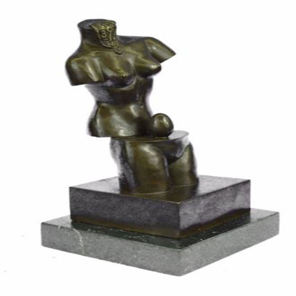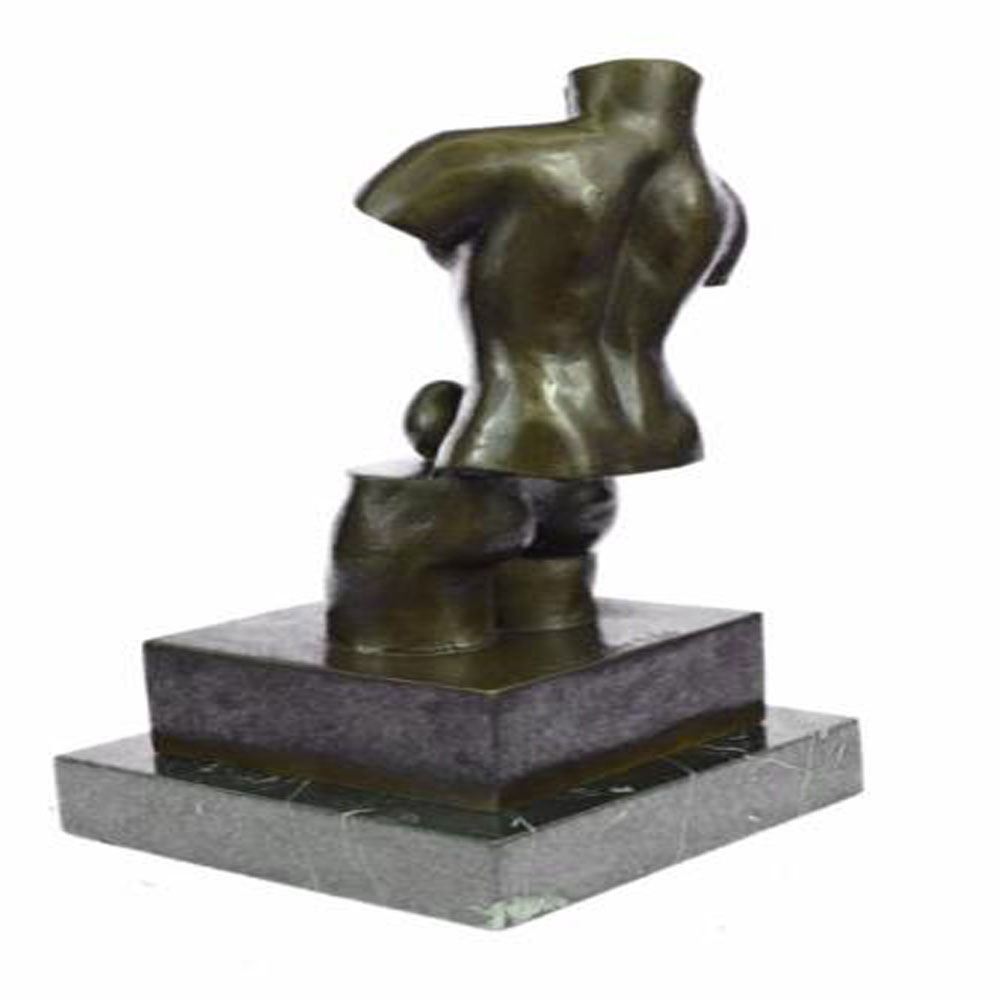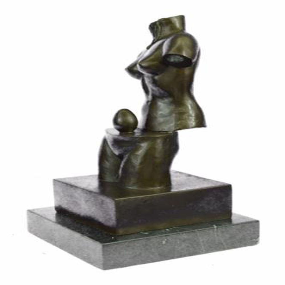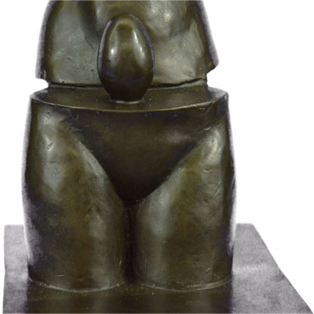 Space Venus is goddess of beauty although headless and without arms. It is divided into two parts that reveals an egg, a symbol of life, continuation and hope. This Bronze Sculpture was cast using the Lost Wax Method ensuring quality of detail. This Bronze Sculpture has a special hand painted brown color patina. Mounted upon a marble base. Bronze Dimensions with Marble Base: Height 12 X Width 6 inches. Weight: 10 LBS.