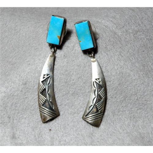 Hand Crafted South Western Sterling Silver Overlay & Turquois Earrings. The are 2 1/2" long. The work is handcrafted nad marked with the initial of the artisan silversmith. <p> The condition is excellent other than a layer of patina that will polish off easily. <p><p><p>******************************************************************************************************************************************