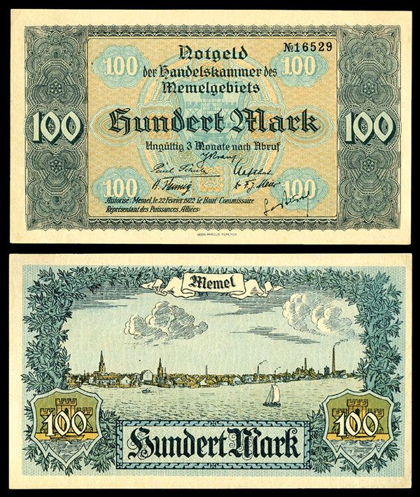 Memel (Klaipeda, Lithuania), 100 Mark, 1922, P-9, AU-UNC.