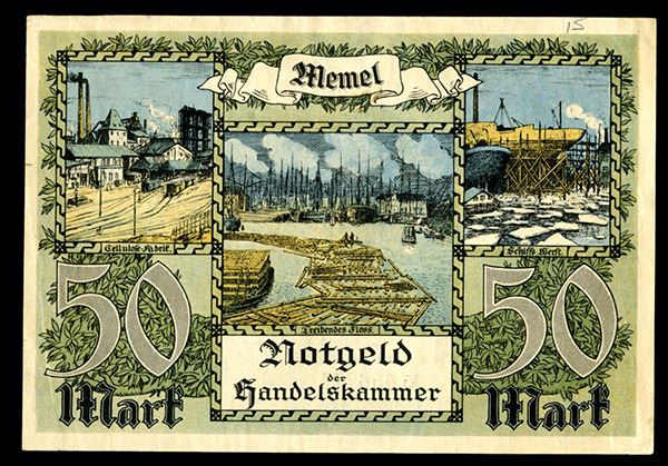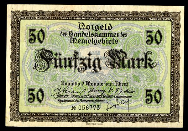Memel (Klaipeda, Lithuania), 50 Mark, 1922, XF to AU, Attractive note.