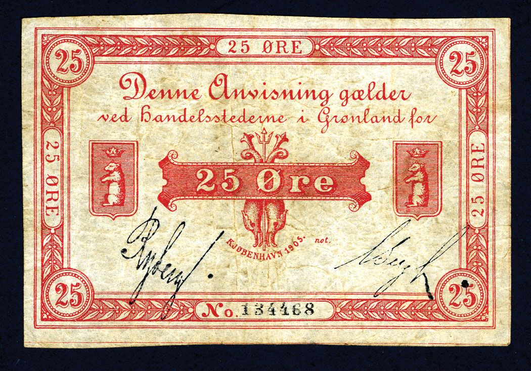 Greenland, 25 Ore, 1905, P-4b, Fine condition.