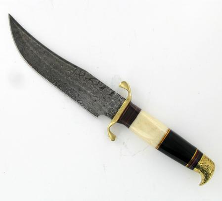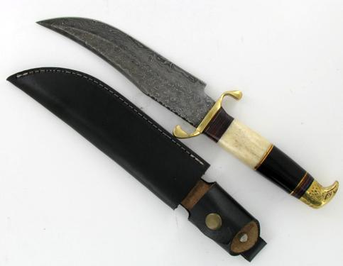 Excellent top grade heavy piece with brass bone horn handle and belt case; 13"