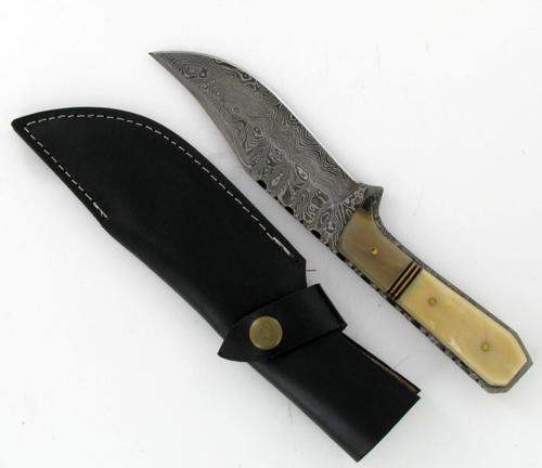 Excellent top grade heavy piece with bone horn handle and belt case; 9"