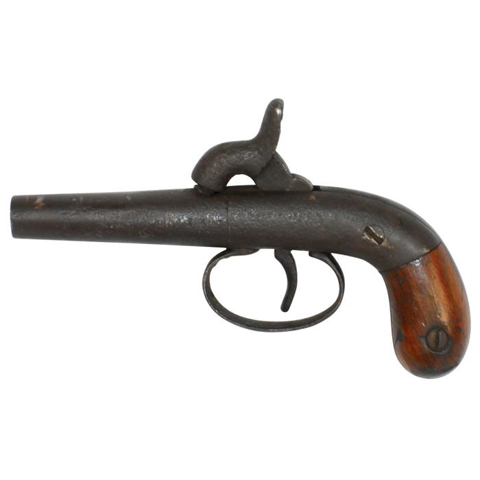 Handgun, Percussion, Single Barrel, .30 bore dia., heavily pitted overall , mechanically Poor cond.