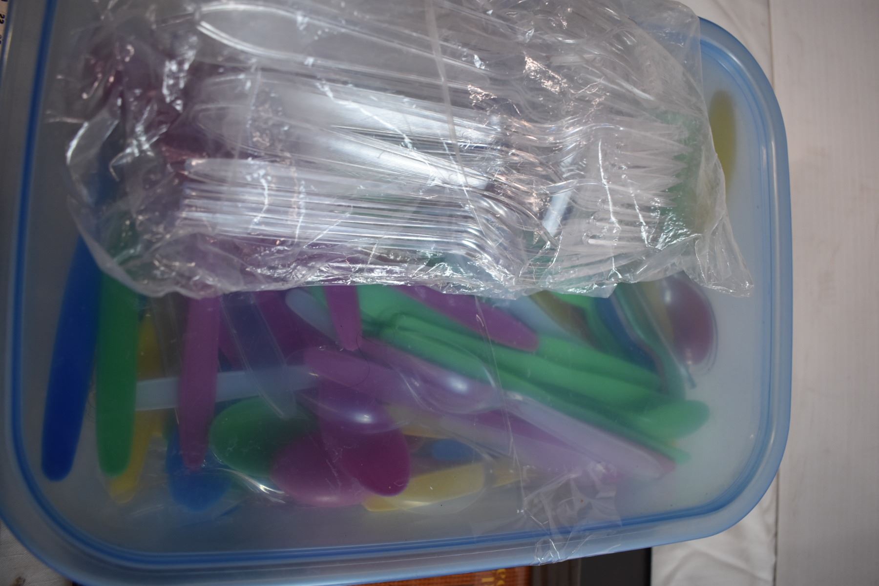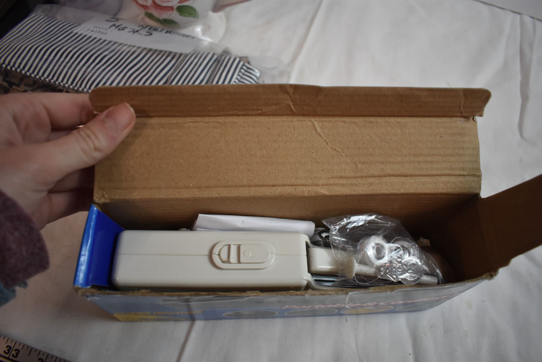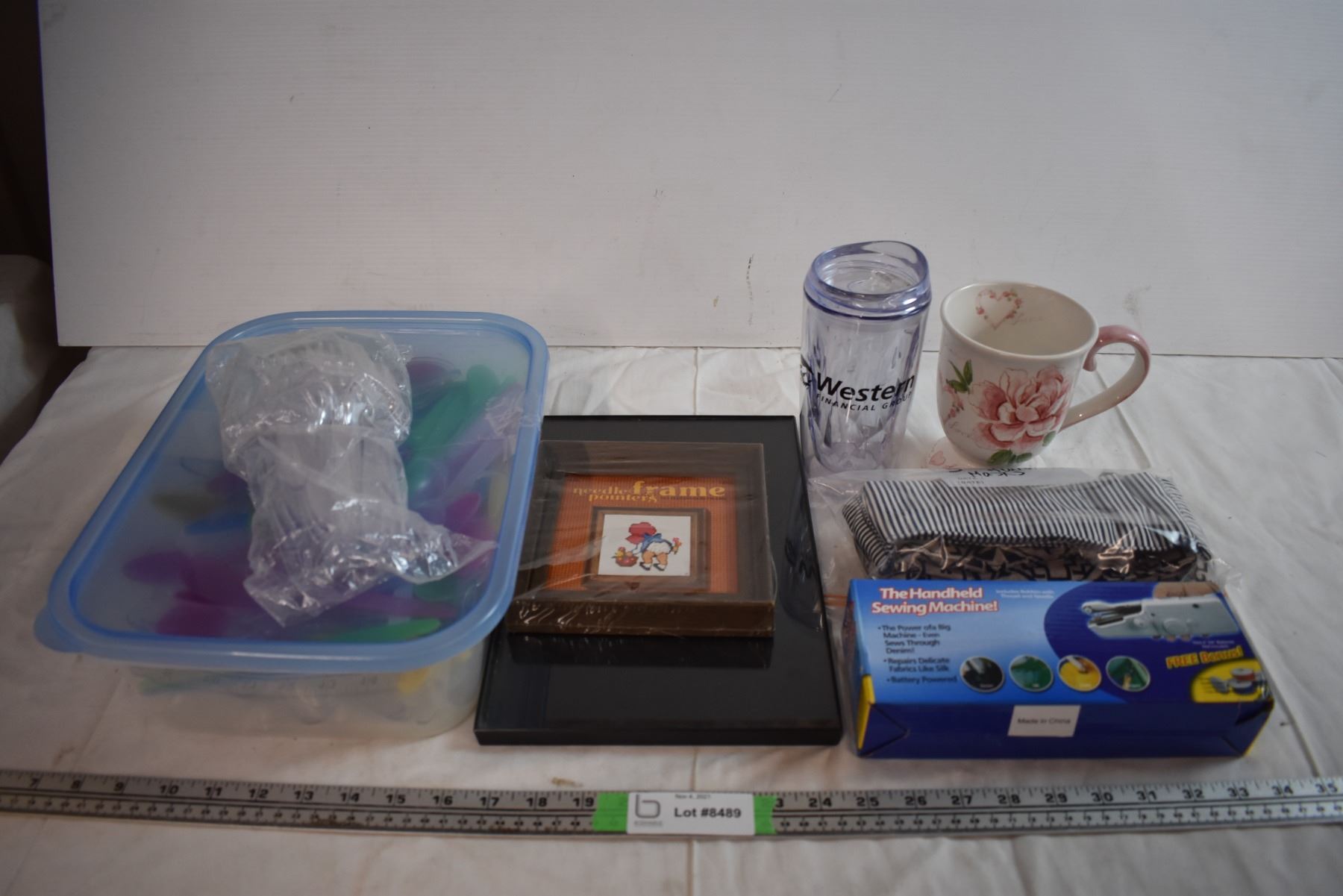 Handheld Sewing Machine, Plastic Cutlery, and Misc