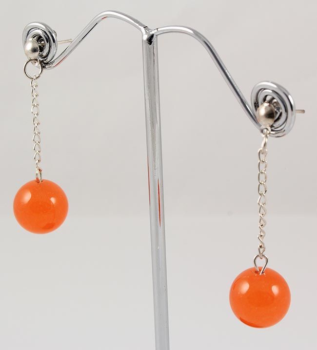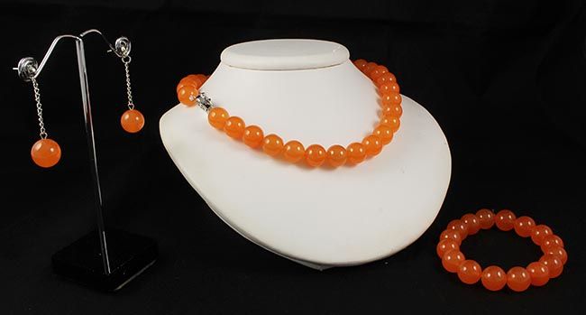 Handknotted Hot Orange Jade Necklace Set Jewelry **|**|** 604.00CARAT Hand-Knotted Set of 12MM Hot Orange Jade Necklace with metal lock, Elastic Bracelet and Dangling Earring ; MSRP: $0