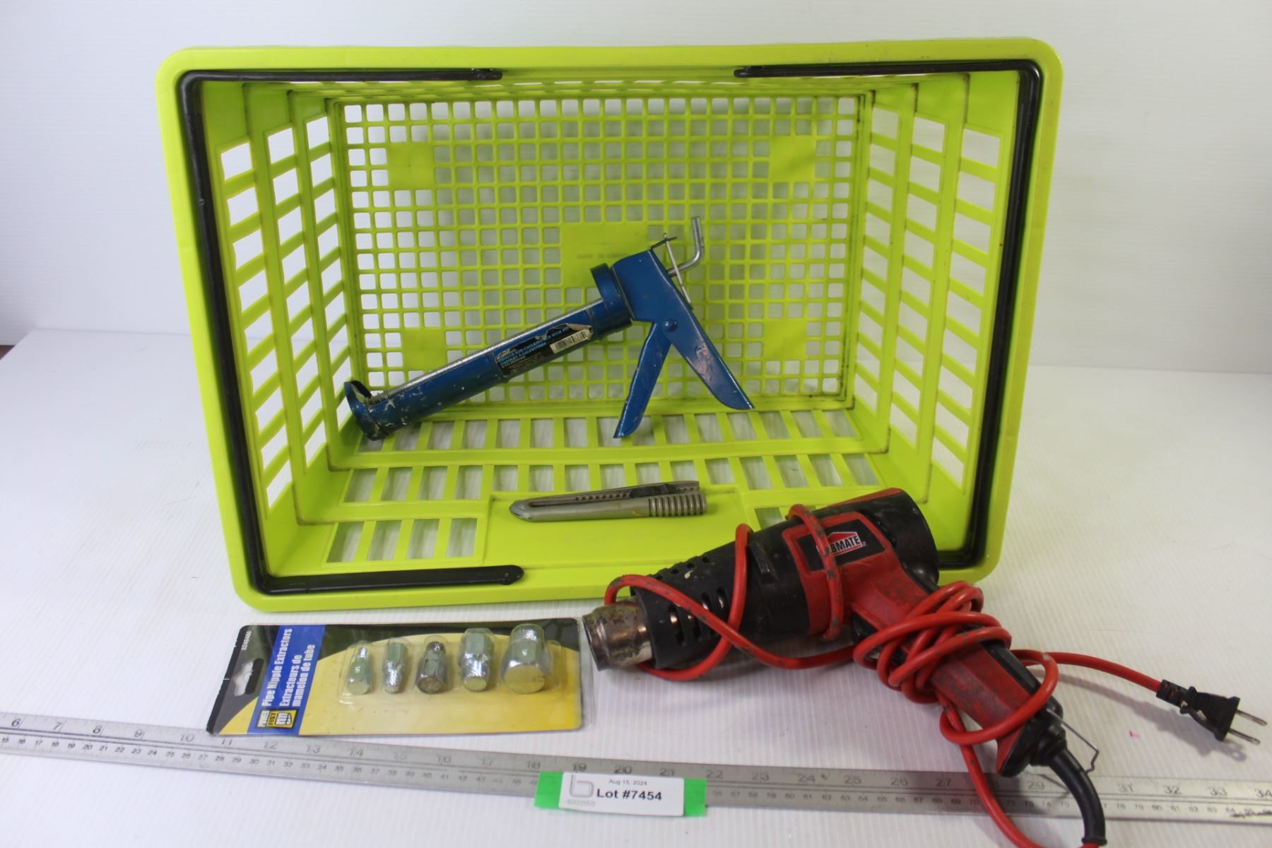 Handled Basket - Job Mate Heat Gun (working - missing Back Cover) - Pipe Nipple Extractors - Chalking Gun