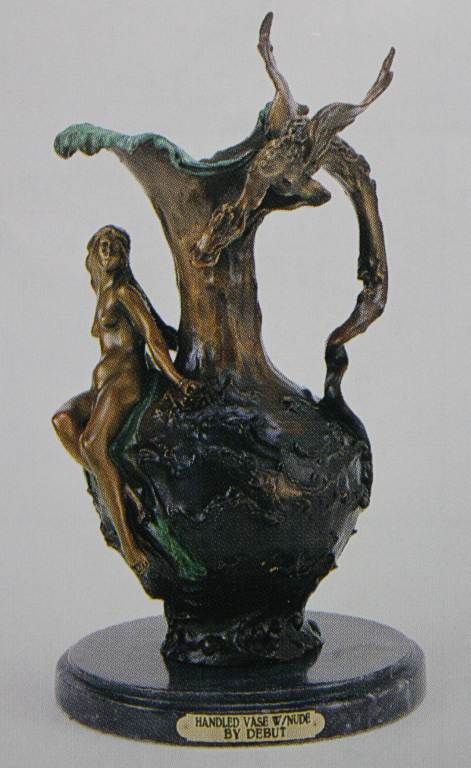 "Handled Vase With Nude" Bronze Sculpture - After Debut - Beautiful Color Patina - Mounted On A Fine Italian Marble Base - Beautifully Detailed - Signed - Mint Condition - 18"H X 10"W - Lost Wax Cast Bronze