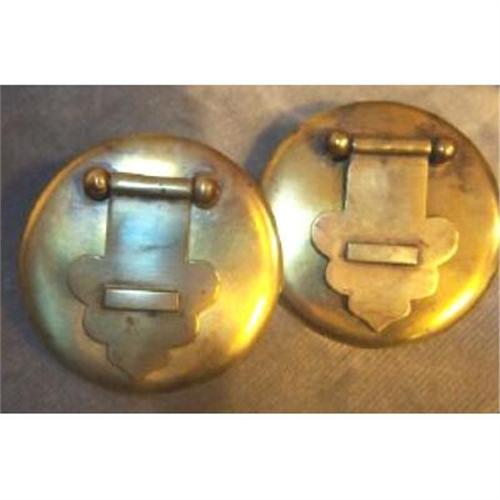 Handles Vintage set/pair (2) Solid brass round backPlate w/shapley arrow head drop handles. Simple Classic design w/oriental flare.