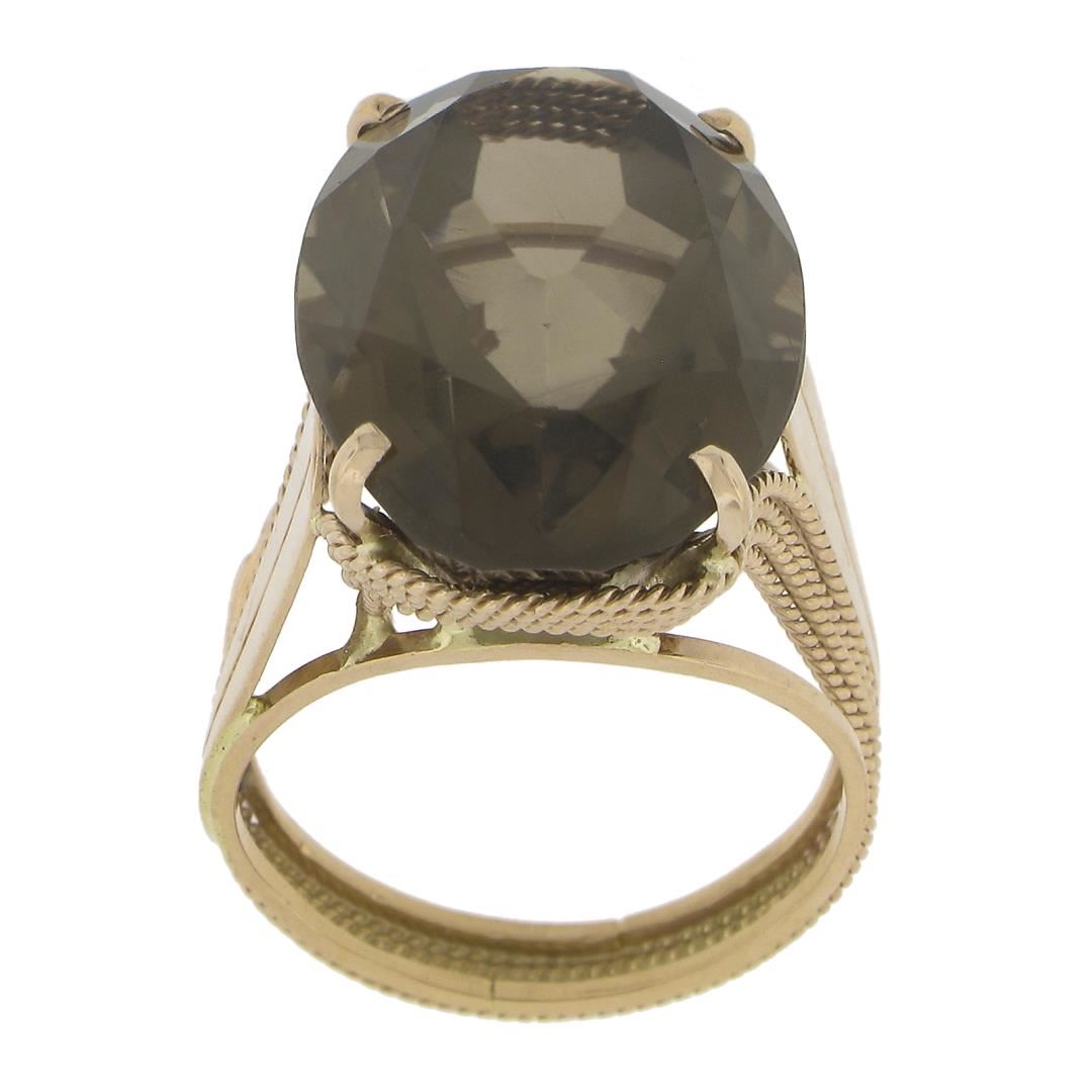Handmade 14K Rose Gold Large Oval Smoky Quartz Solitaire Wire Work Cocktail Ring