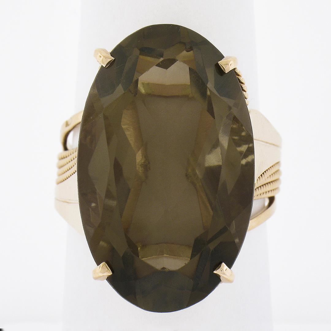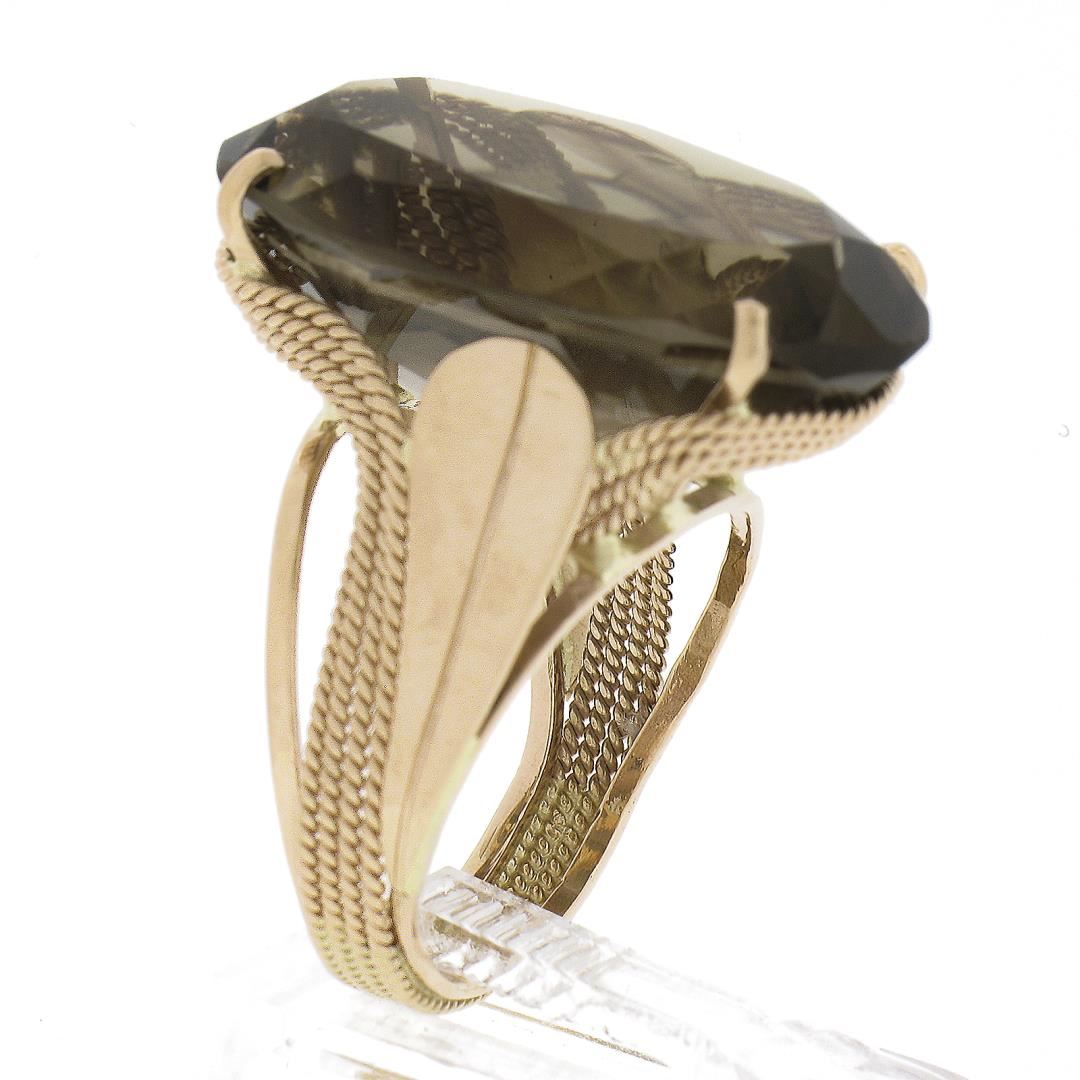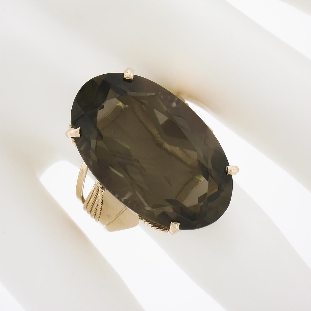 Handmade 14K Rose Gold Large Oval Smoky Quartz Solitaire Wire Work Cocktail Ring