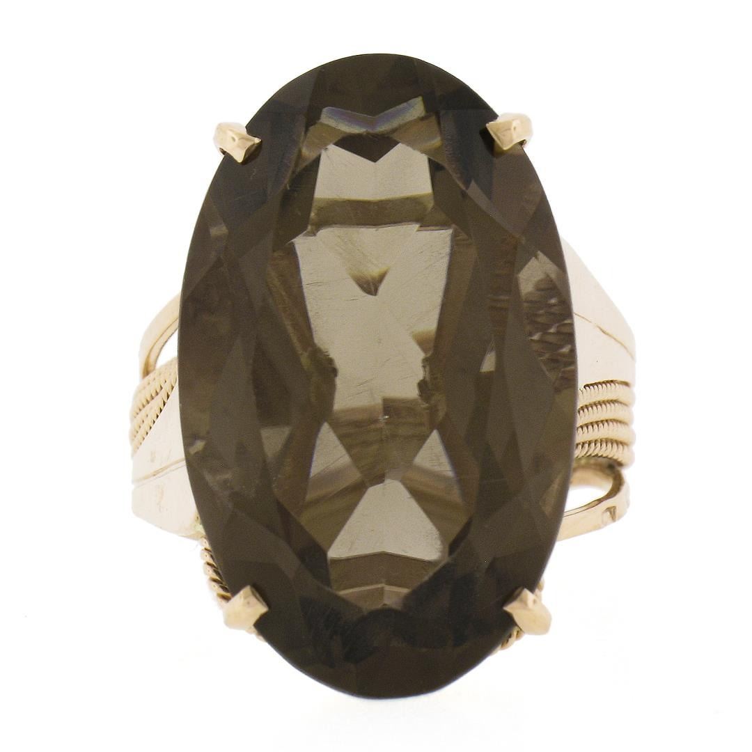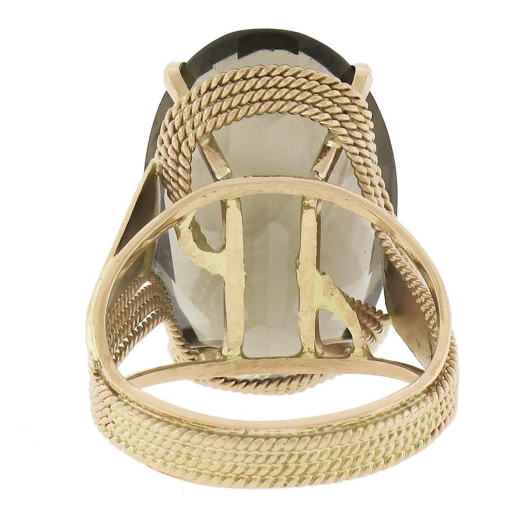 Handmade 14K Rose Gold Large Oval Smoky Quartz Solitaire Wire Work Cocktail Ring
