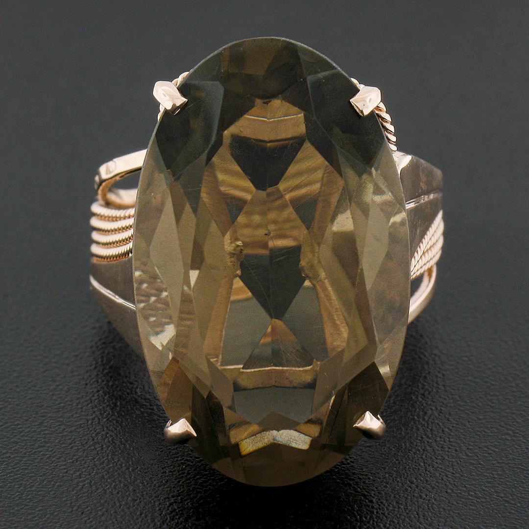 Handmade 14K Rose Gold Large Oval Smoky Quartz Solitaire Wire Work Cocktail Ring
