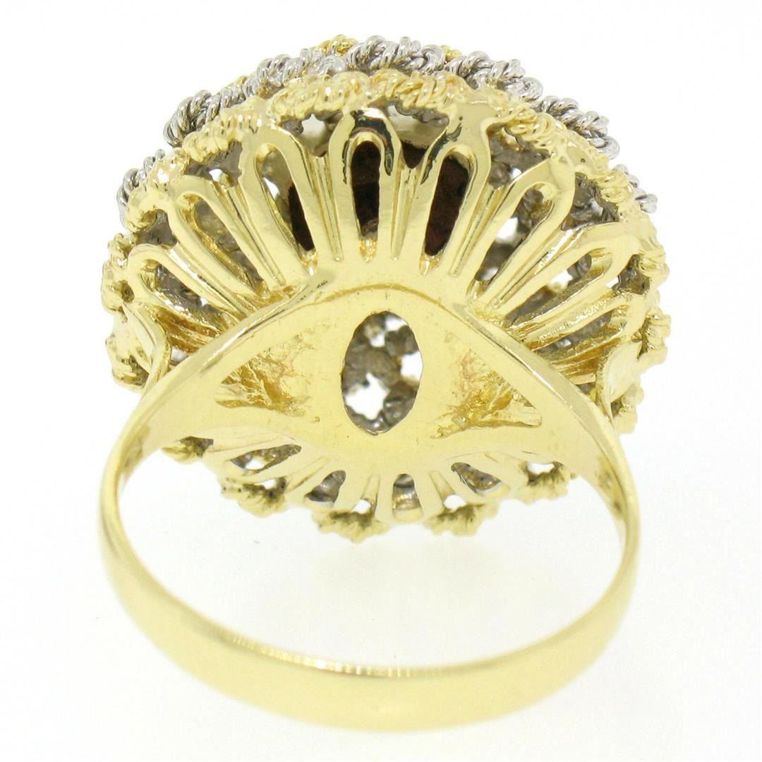 A like new handmade 18k yellow and white gold ring set with a 7.5mm round pearl. The ring is size 6.5, weighs a total of 8.4 grams, and measures 19.75mm wide.