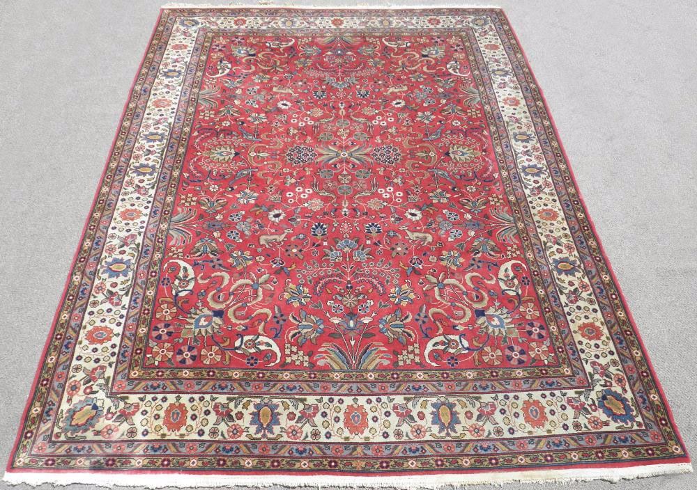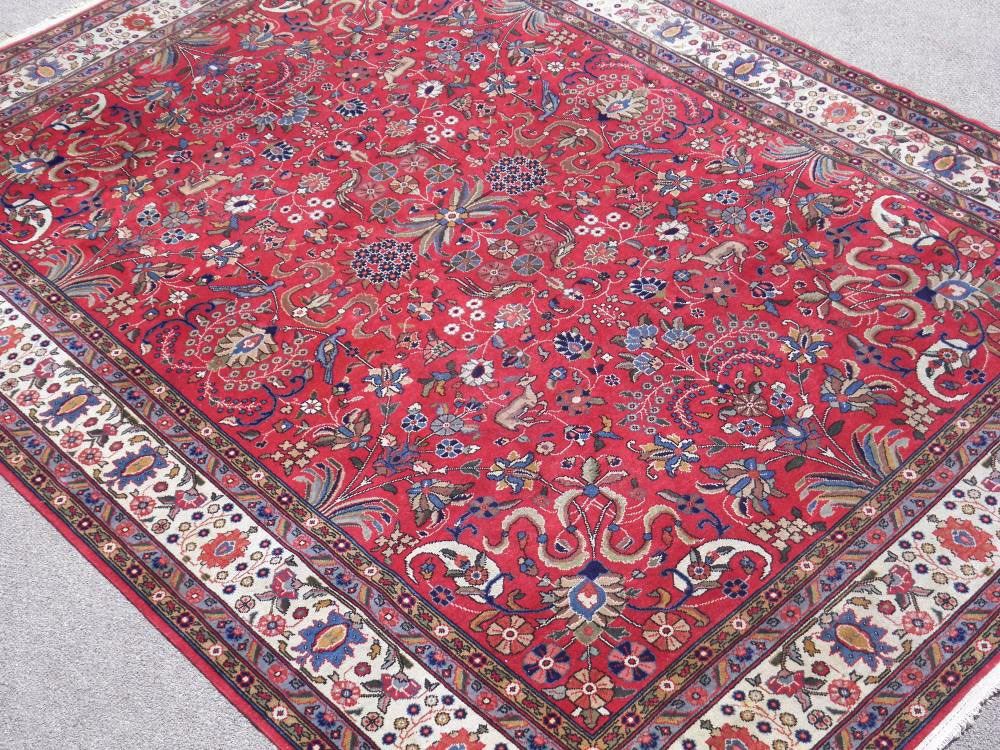 Rug: Handmade Allover Design Fine Quality Semi Antique Persian Tabriz; Material: Made of the finest quality baby lamb's wool pile, all natural vegetable dye; Size: 8.3 x 11.1 feet; Foundation: Cotton; Design: Persian Tabriz; Origin: Tabriz, Iran;