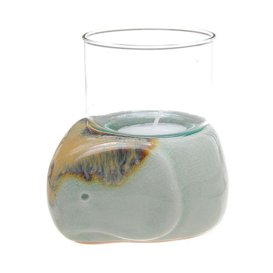 Well crafted ceramic piece with glass globe; 4"