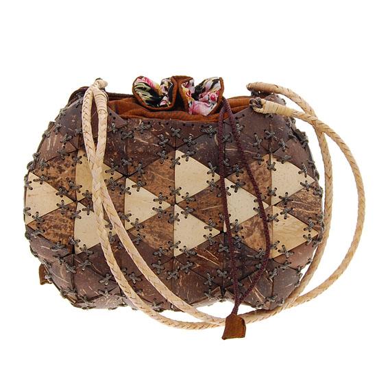 Excellent well made and hand polished coconut shell handbag; 7" x 10" bag with inside side pocket; $149 retail