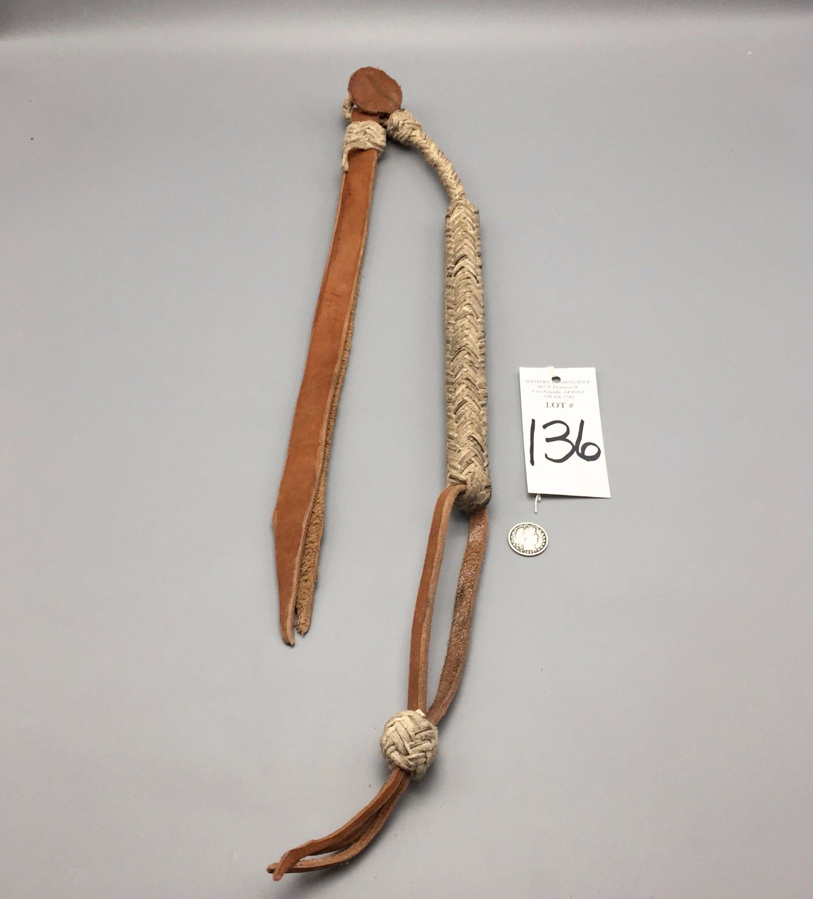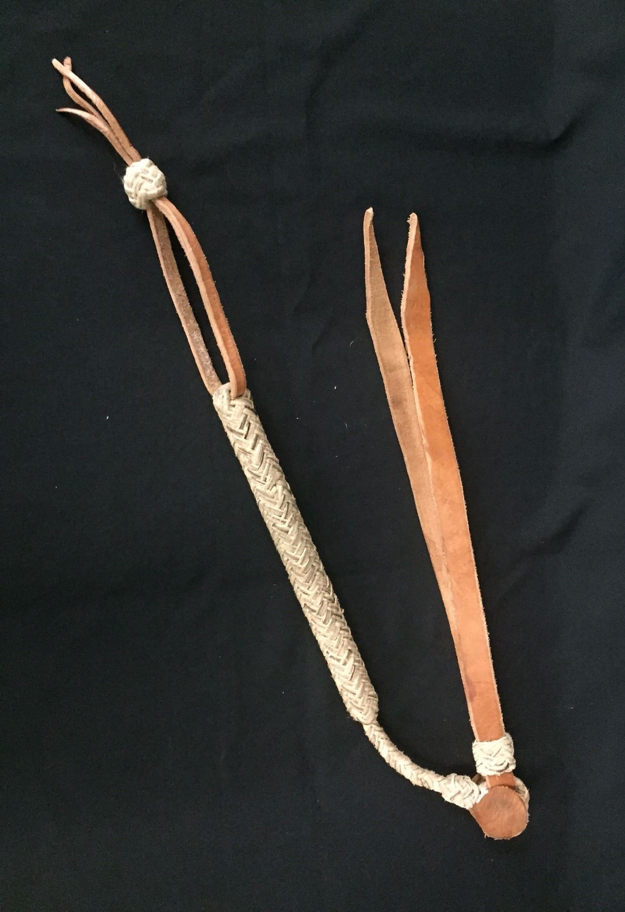 Maker: Unknown. Approx. Age: Fairly modern. Size: Measures 47” long overall. Additional Info: Vintage handmade cowboy quirt. Condition: Good for it’s age, normal wear expected. Please look closely at the pictures - they are an important part of our description. Shipping: There will be a $5 handling / packaging fee for shipping this lot. The actual cost of postage will be added on top of that.