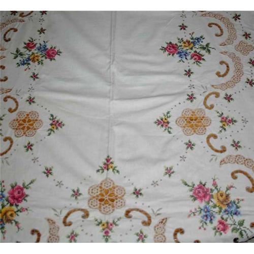 This is an absolutely stunning handmade table cloth or twin coverlet given as a wedding present over 30 years ago and never used! A fabulous rich ivory cream white color of heavy cotton sewn in three sections with exquisite workmanship of cruel and needle point that is so well done the flowers appear to be hand painted! In superb condition.