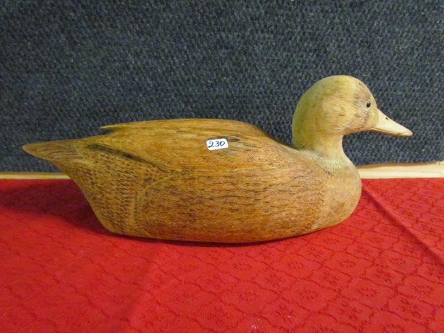 Handmade Wooden Decoy with glass eyes - 17 " long, signed LC