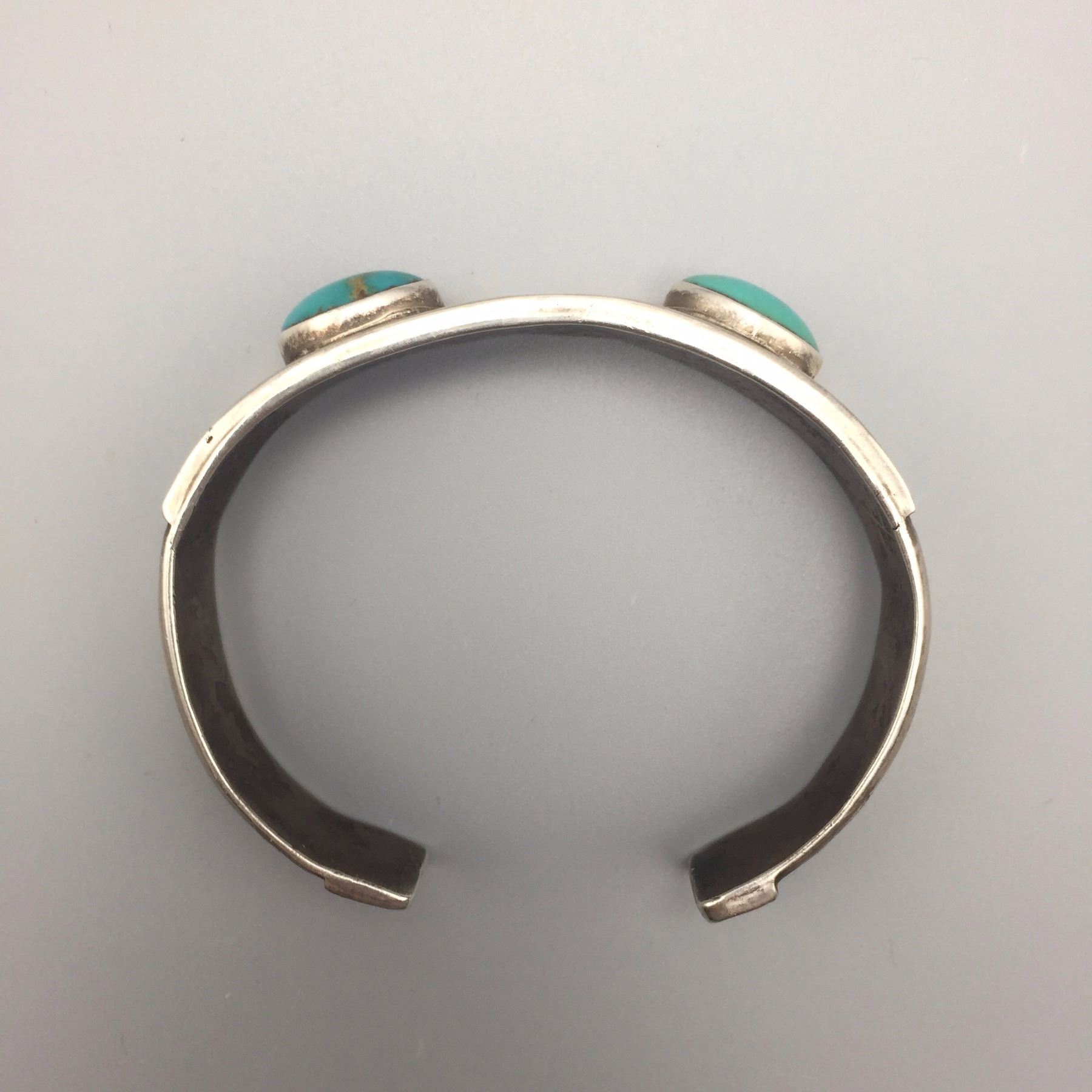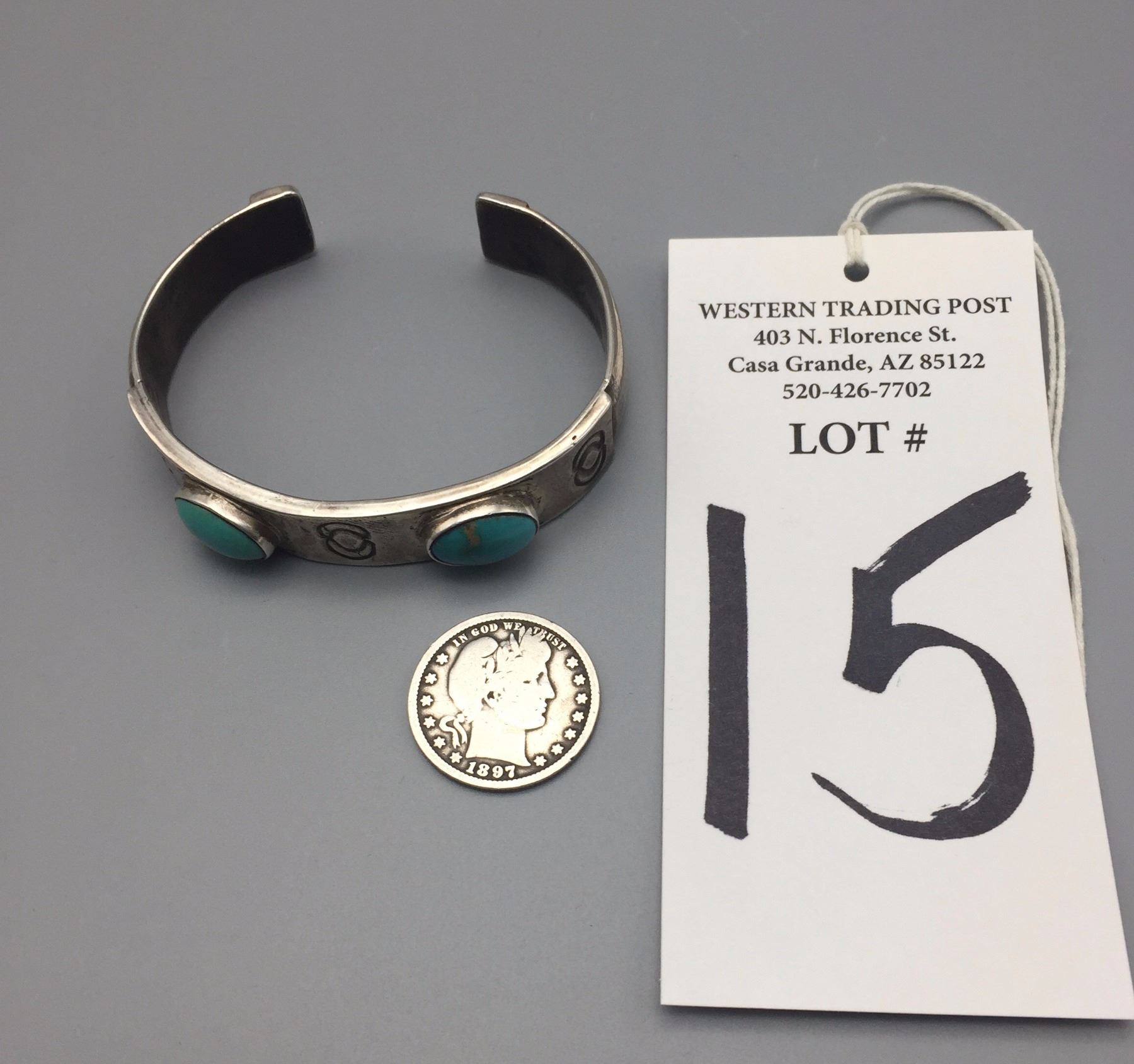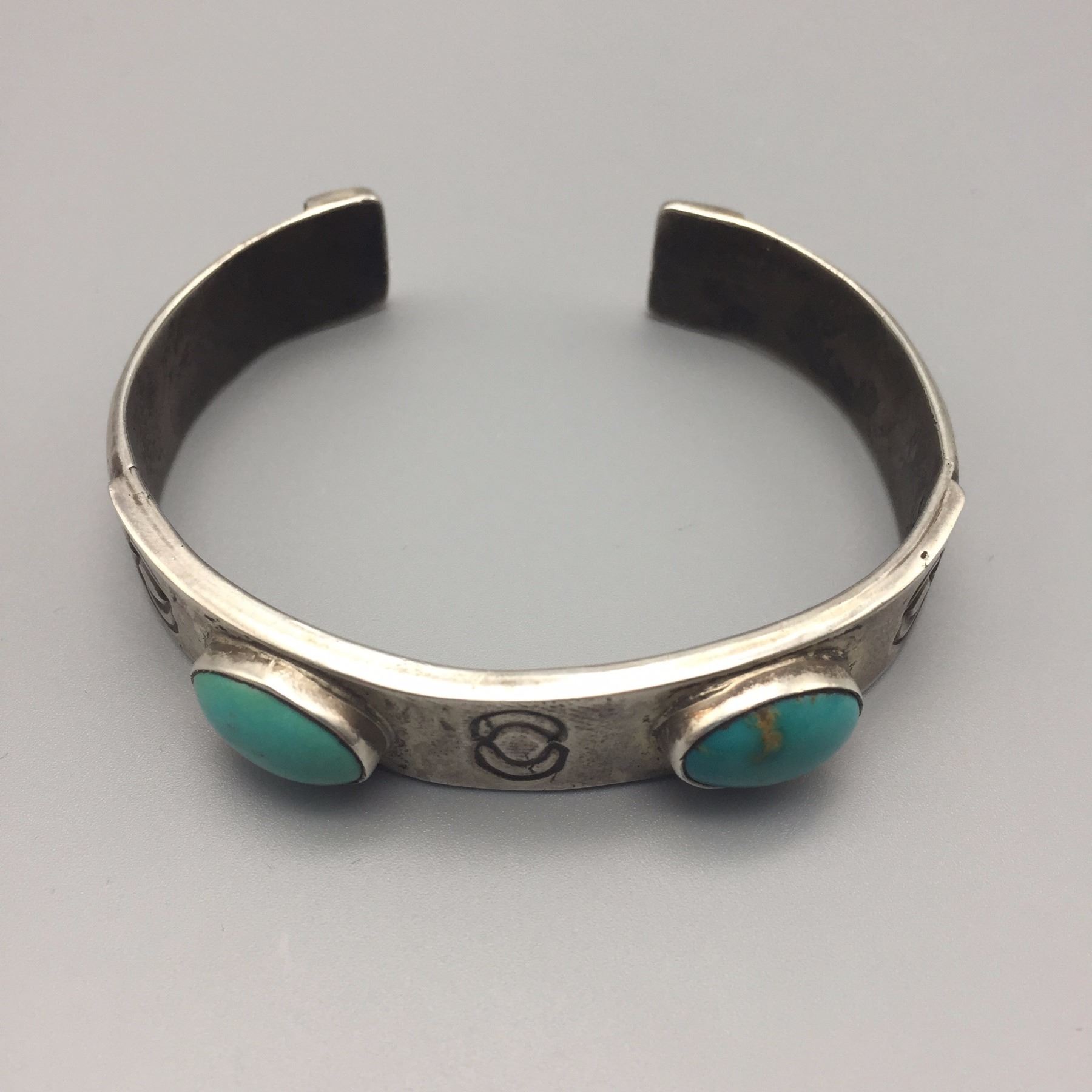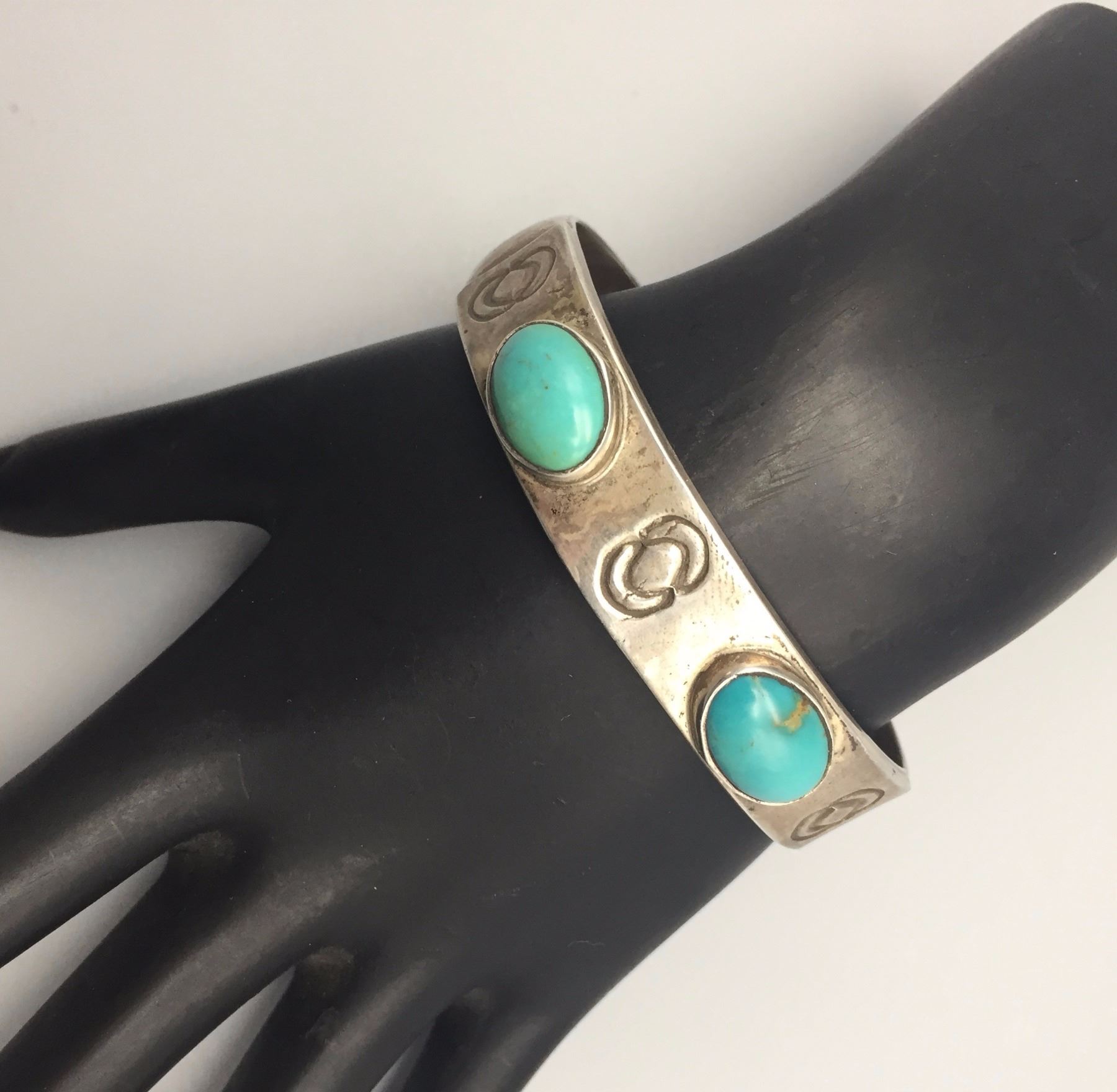 Maker: Unknown, no hallmarks evident. Approx. Age: Fairly modern, but retro style. Size: Inside circumference measures 5 7/8” with an additional 1” opening (making it fit an approx. 6 5/8” wrist), 1/2” w and weighs 54.2 g. Additional Info: Handmade hammered coin silver ingot bracelet. Condition: Good, normal wear expected. Please look closely at the pictures - they are an important part of our description. Shipping: There will be a $5 handling / packaging fee for shipping this lot. The actual cost of postage will be added on top of that.