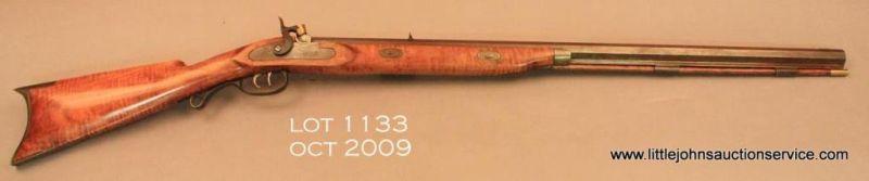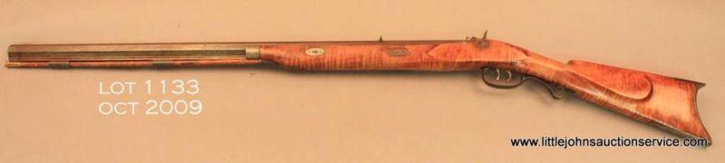 Handmade Hawken copy, .50 cal (.498) percussion rifle, all maple half-stock is in very good cond., heavy 32” octagon barrel, double-set triggers, antique finish. Overall very good condition. Est .$200-400.