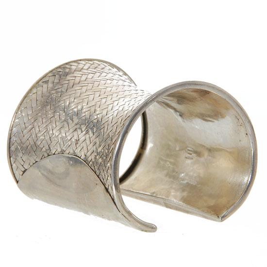 Beautiful handmade Nomadic Hilltribe expandable cuff bracelet; sterling silver; 129 grams 3" basketweave design