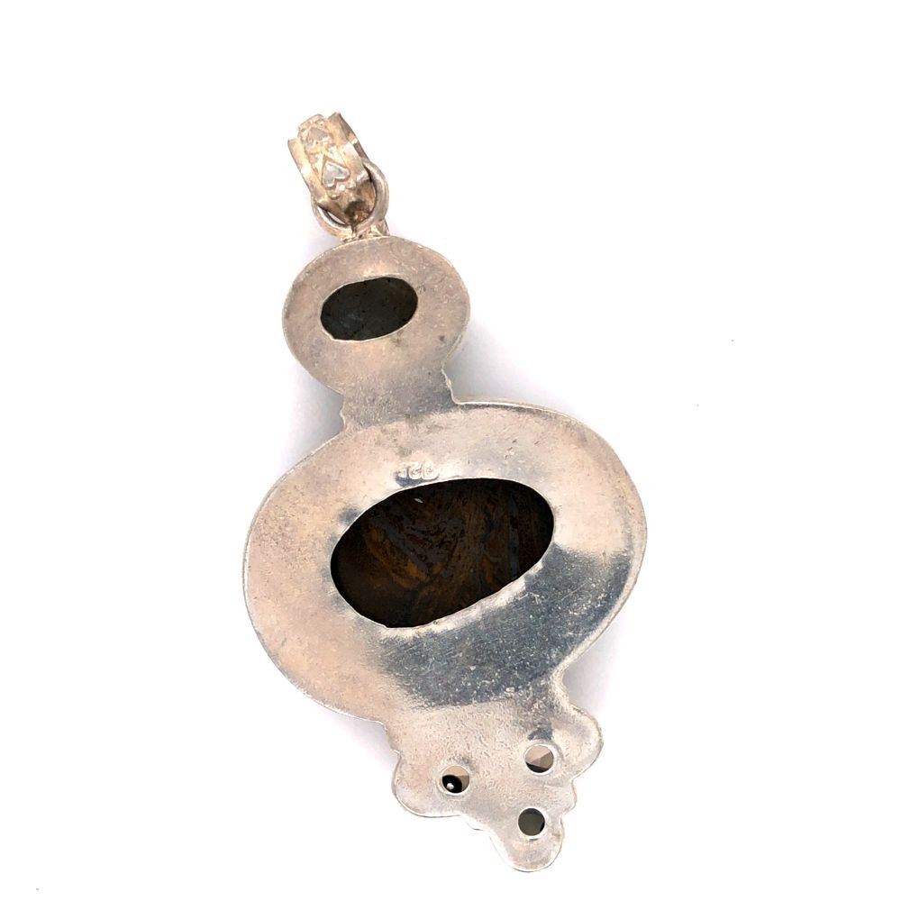 Vintage Handmade Labradorite, Jasper, Citrine and shell Large 925 silver Pendant L 2 1/2 "x W 1 1/8 "