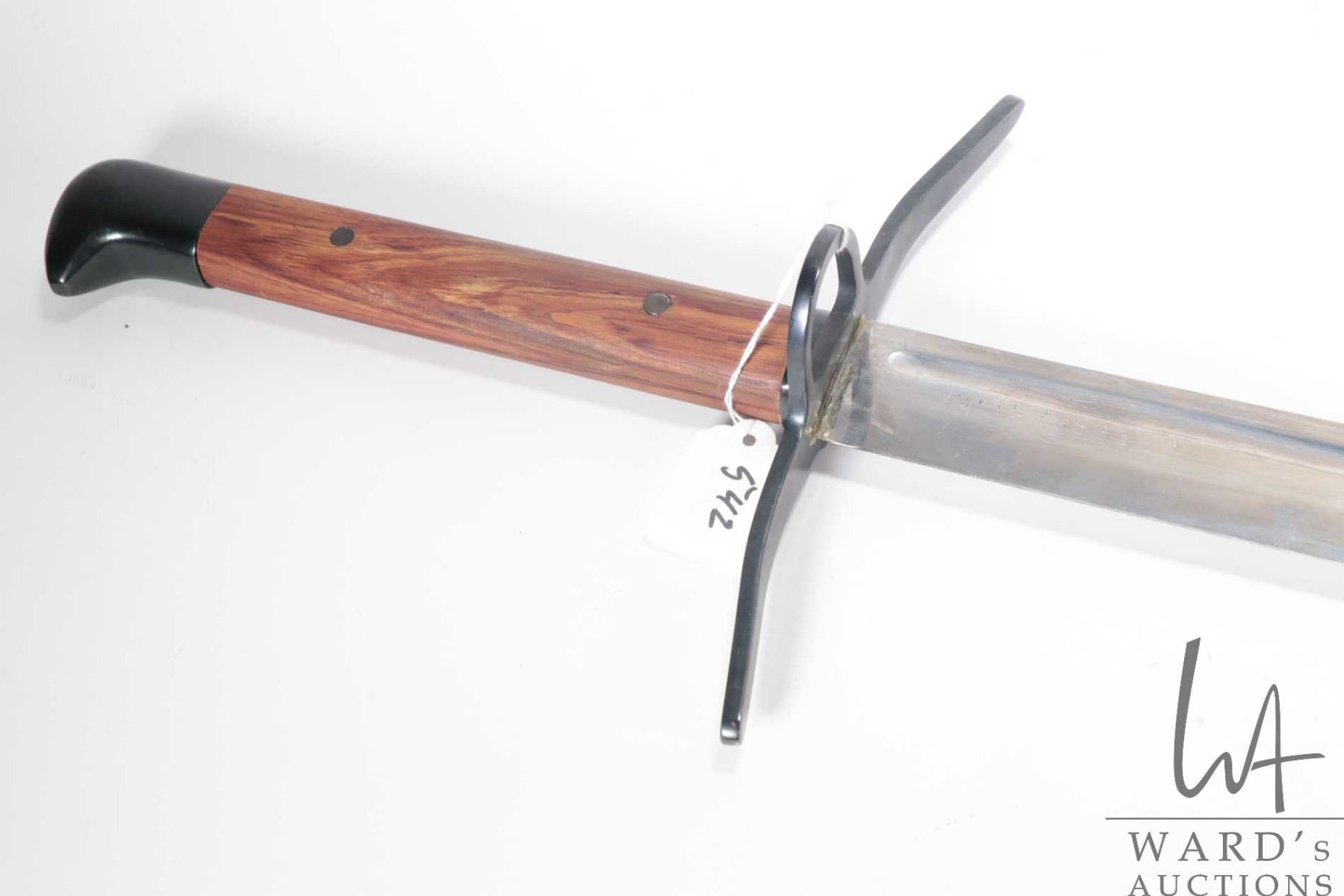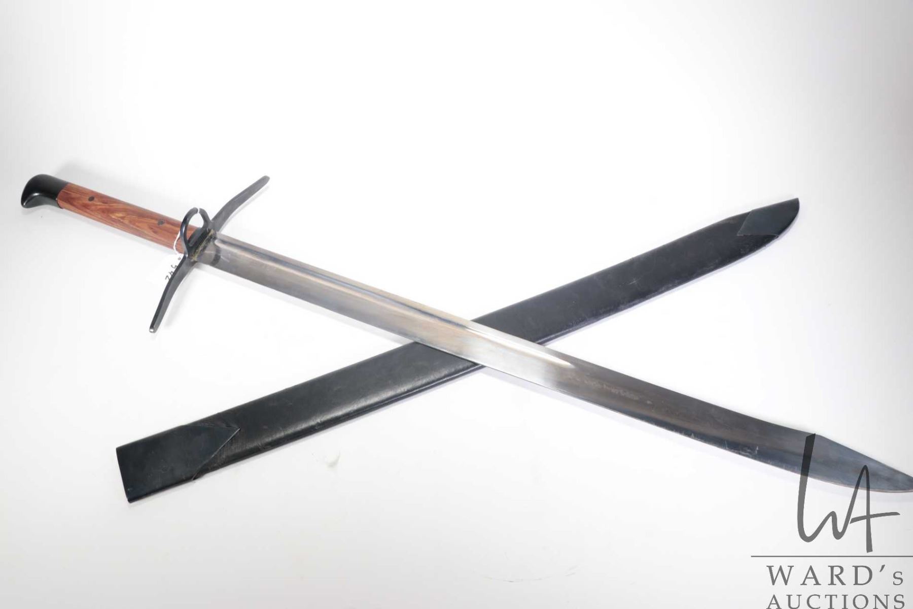 Handmade Medievel style sword with single edge and 32" blade, long wooden handle, leather scabbard and blade stamped Buttermesser