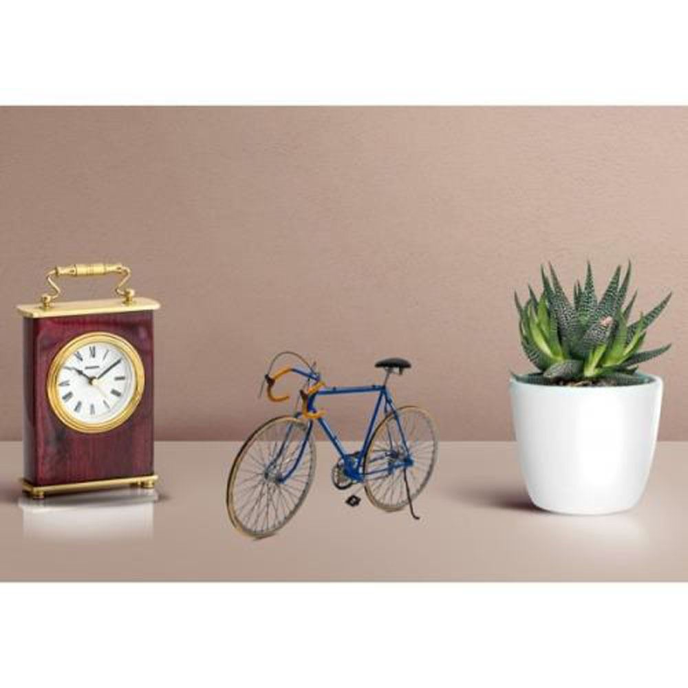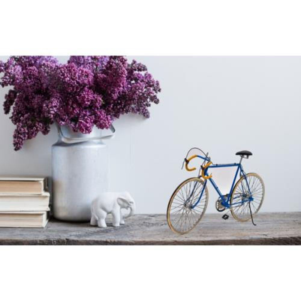 Iron Bicycle Sculpture. Featuring a rustic iron frame, this charming vintage bicycle includes kickstand, and fenders. The black metal seat and handlebars are finished in natural colors. Overall measurement (Approx. HXW) : 8X14X3 Inches. Weight: 4 LBS.