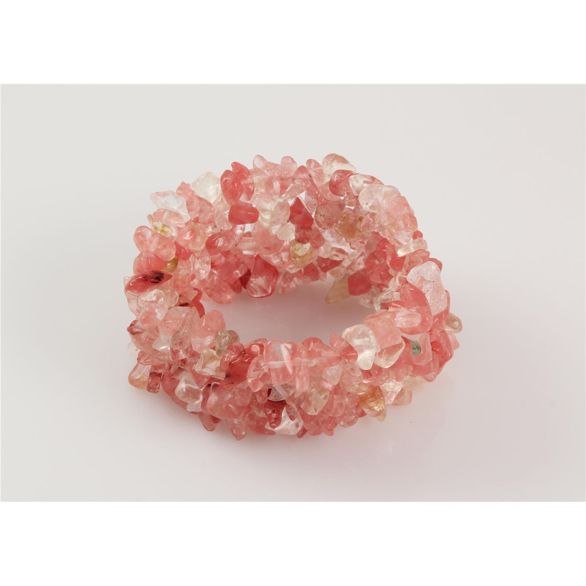 Handmade Natural Stone Chip Beads Stretch Bracelet **|**|** 273.50CARAT Natural Stone Rose and White Quartz Mini Chip Beads Wide Stretch Bracelet ; MSRP: $0