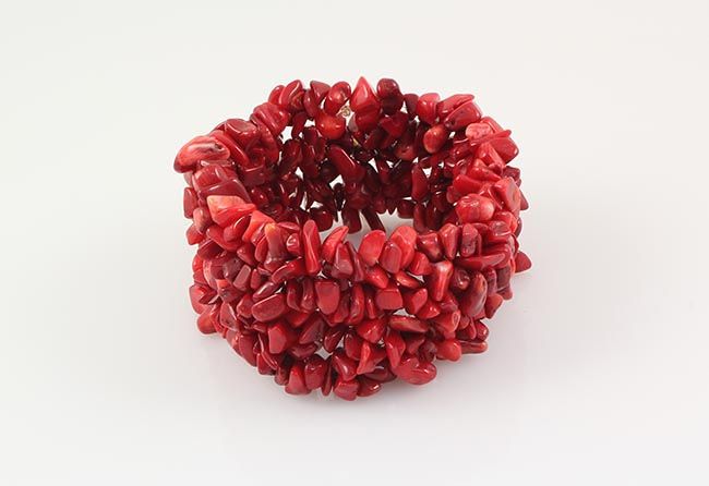Handmade Natural Stone Chip Beads Stretch Bracelet **|**|** 334.00CARAT Natural Stone Polished Deep Red Coral Chip Beads Wide Stretch Bracelet ; MSRP: $0