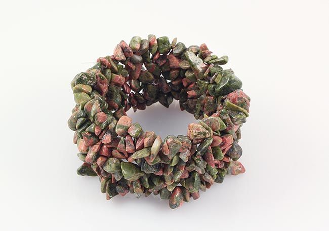 Handmade Natural Stone Chip Beads Stretch Bracelet **|**|** 411.00CARAT Natural Stone Earthly Unikite Mini Chip Beads Wide Stretch Bracelet ; MSRP: $0