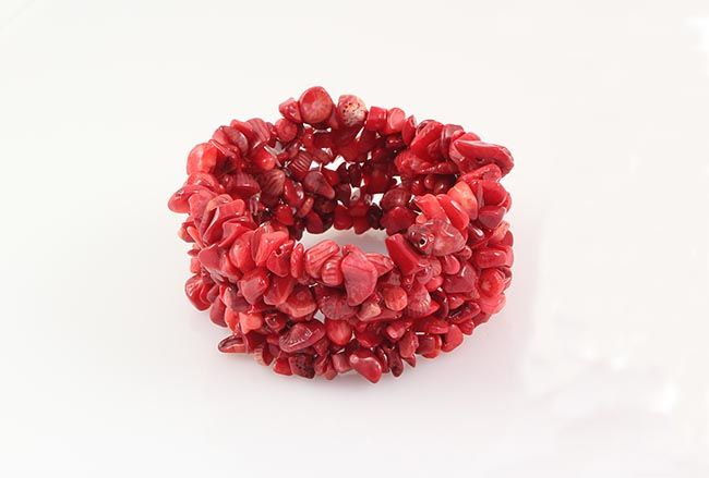 Handmade Natural Stone Chip Beads Stretch Bracelet **|**|** 320.00CARAT Natural Stone Polished Deep Red Coral Chips Beads Wide Stretch Bracelet ; MSRP: $0