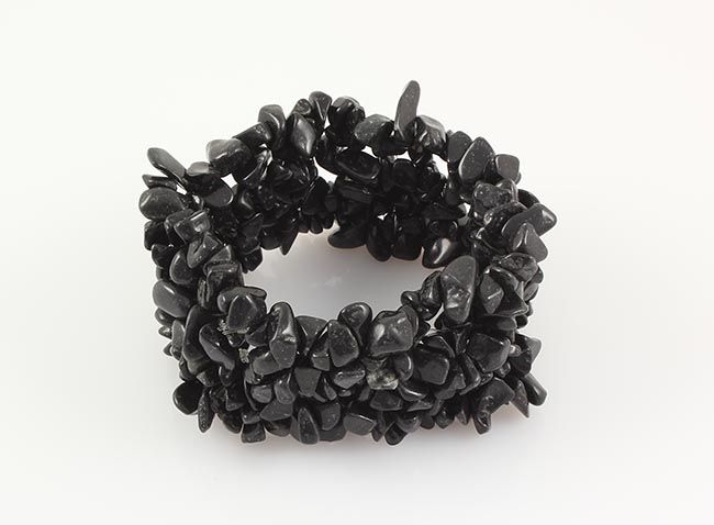 Handmade Natural Stone Chip Beads Stretch Bracelet **|**|** 380.00CARAT Natural Stone Black Obsidian Mini Chip Beads Wide Stretch Bracelet ; MSRP: $0