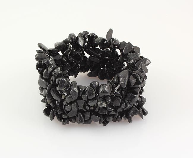 Handmade Natural Stone Chip Beads Stretch Bracelet **|**|** 380.00CARAT Natural Stone Black Obsidian Mini Chip Beads Wide Stretch Bracelet ; MSRP: $0