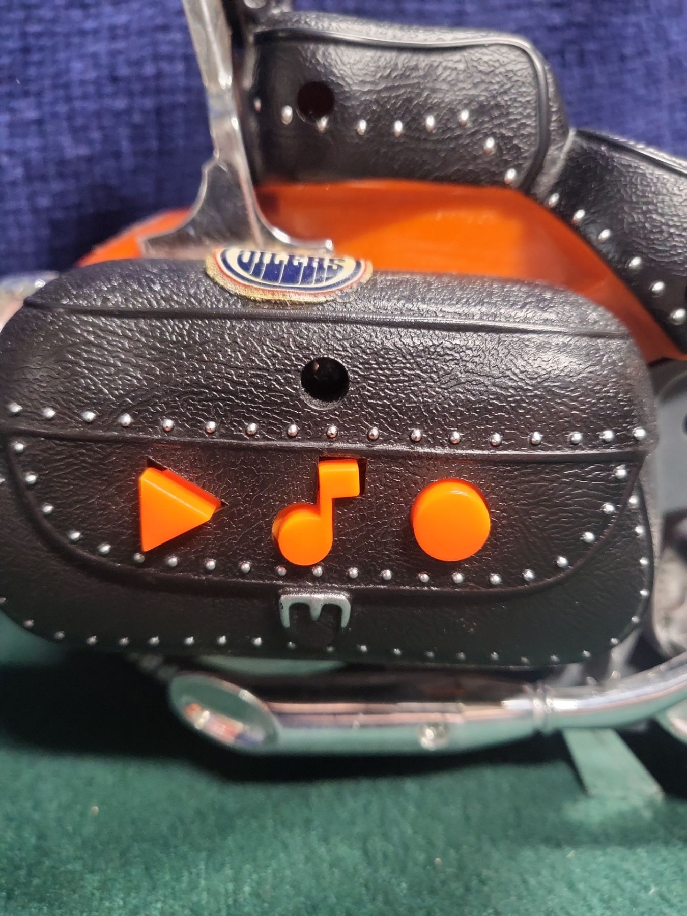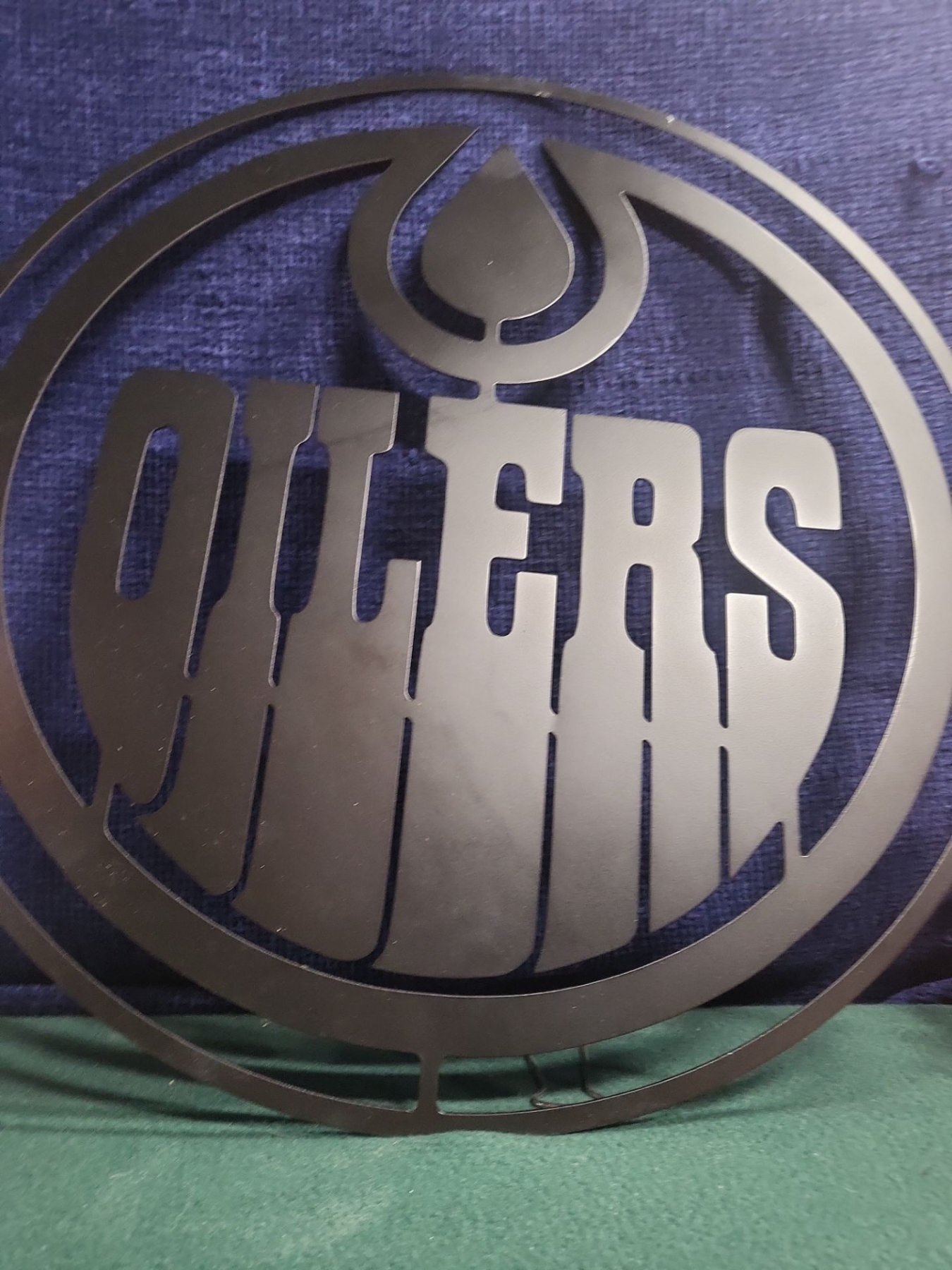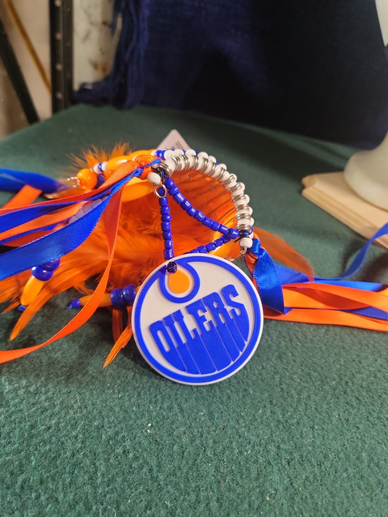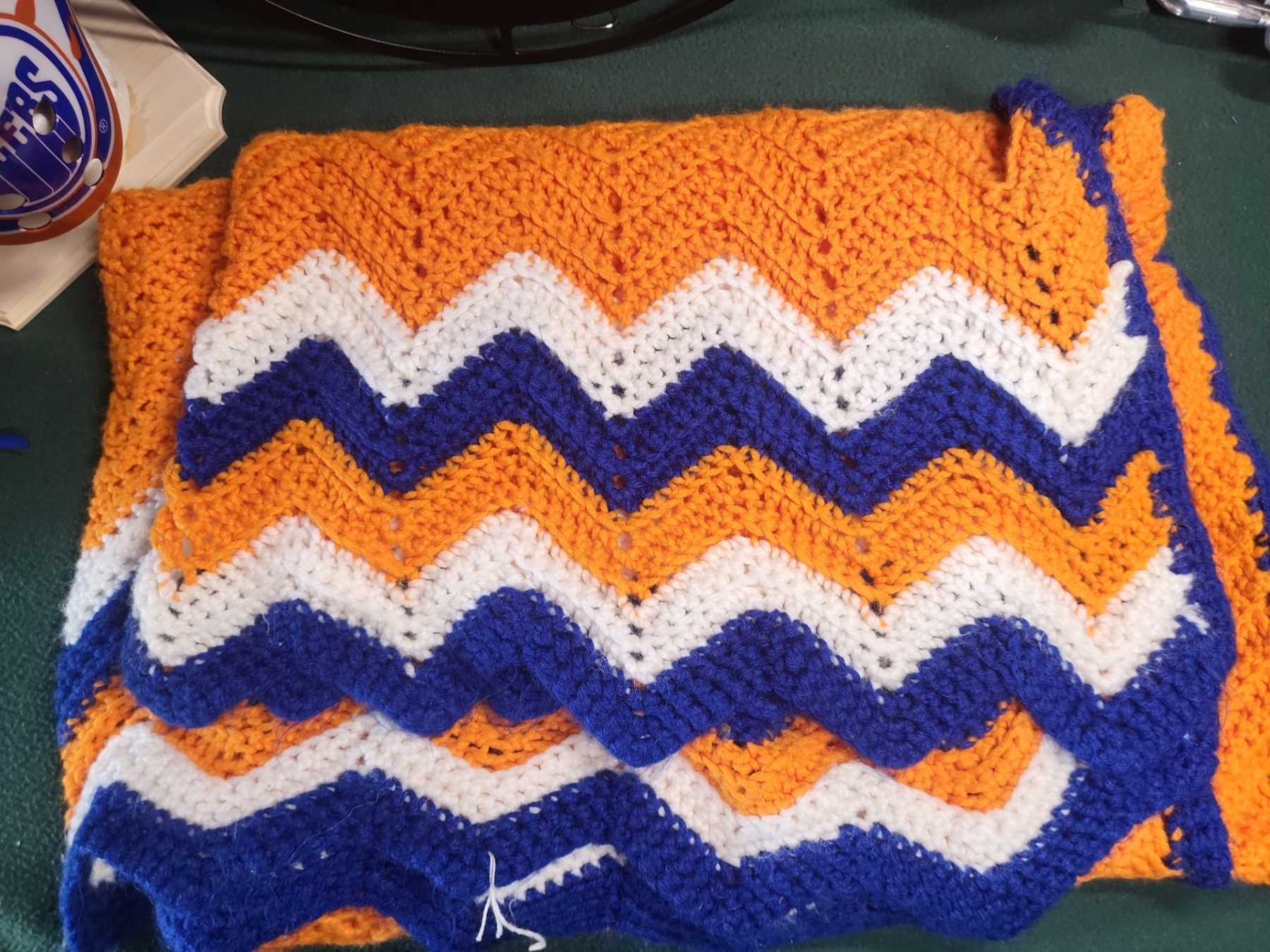 Handmade Oilers Blanket, Steel Sign, Oilers Mask, Toy Bike that Makes Noise