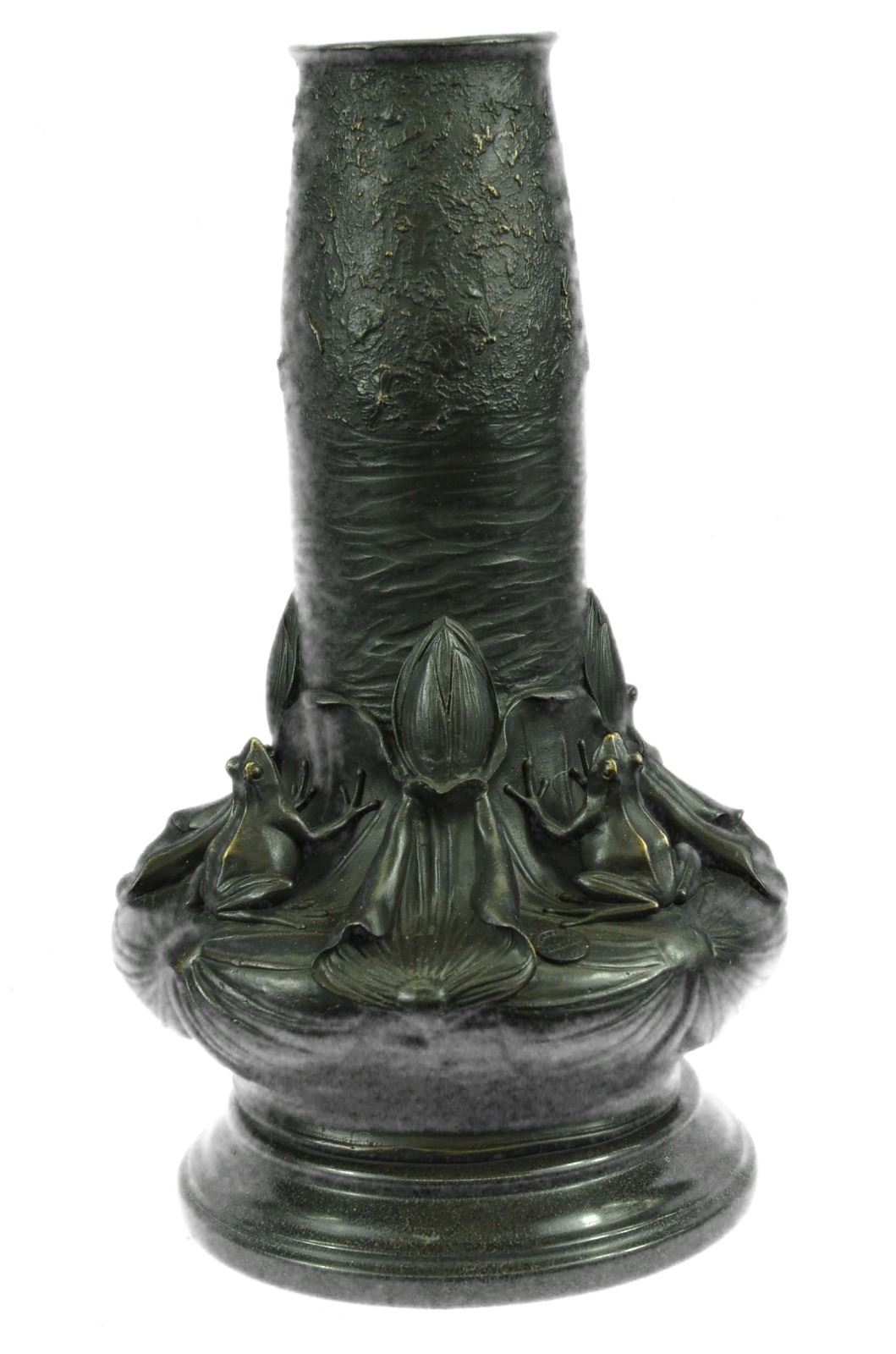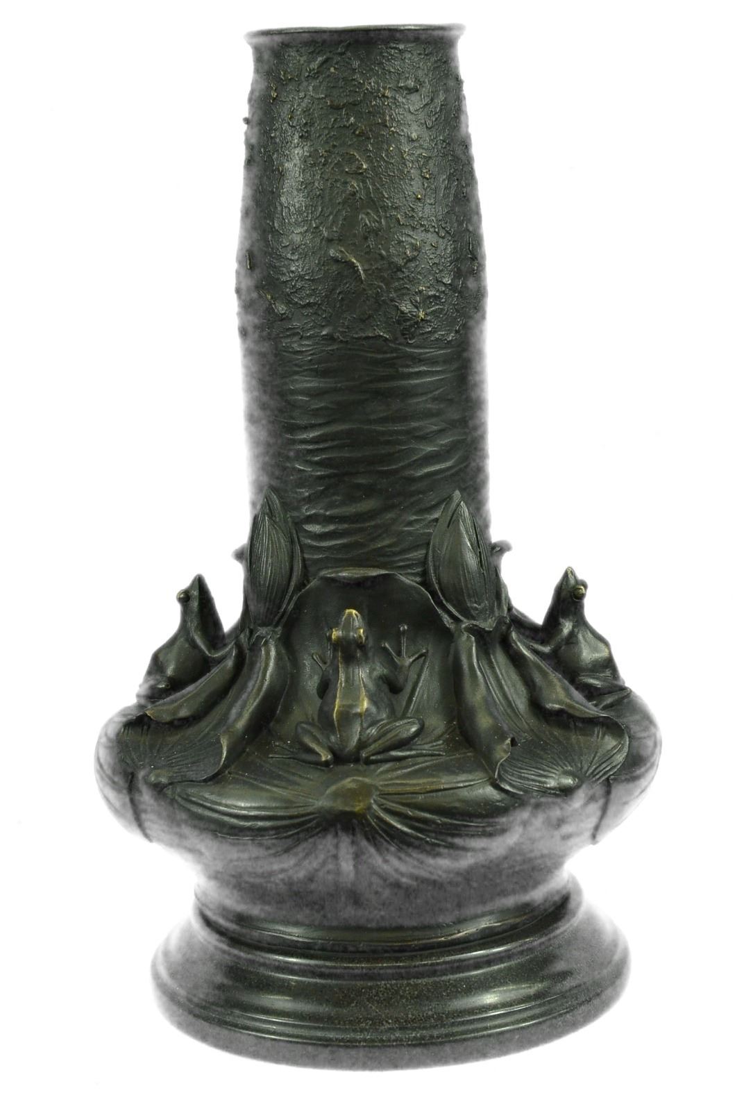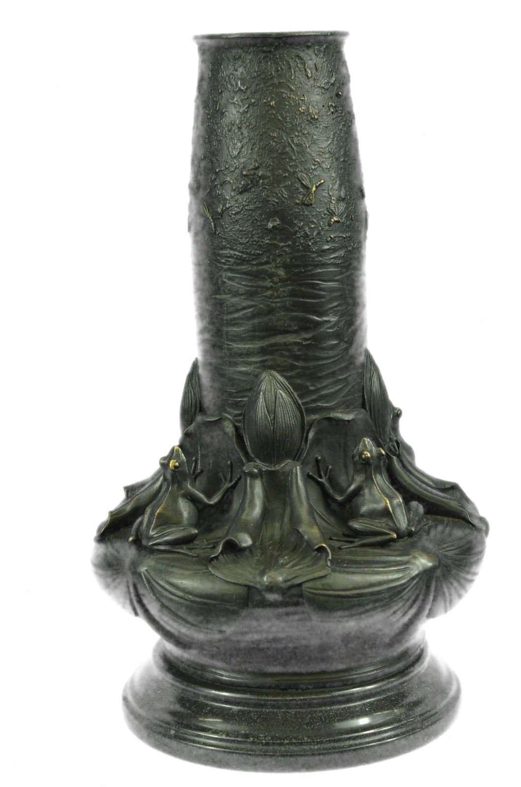 Here is a hand crafted European design pure bronze lotus leaf and frog statue brush pot vase and was created by skilled craftsmen in traditional style with fine handcrafts. This is a great piece of valuable collection, a valuable personal alter or a very good present. The handwork is very fine with incredible detailing. 100% bronze and handmade, this brown patina sculpture was cast using the lost wax method and mounted on a marble base. Bronze dimensions: Height 13 X Width 8 inches. Weight: 12 LBS. Inventory: 37EP6667573
