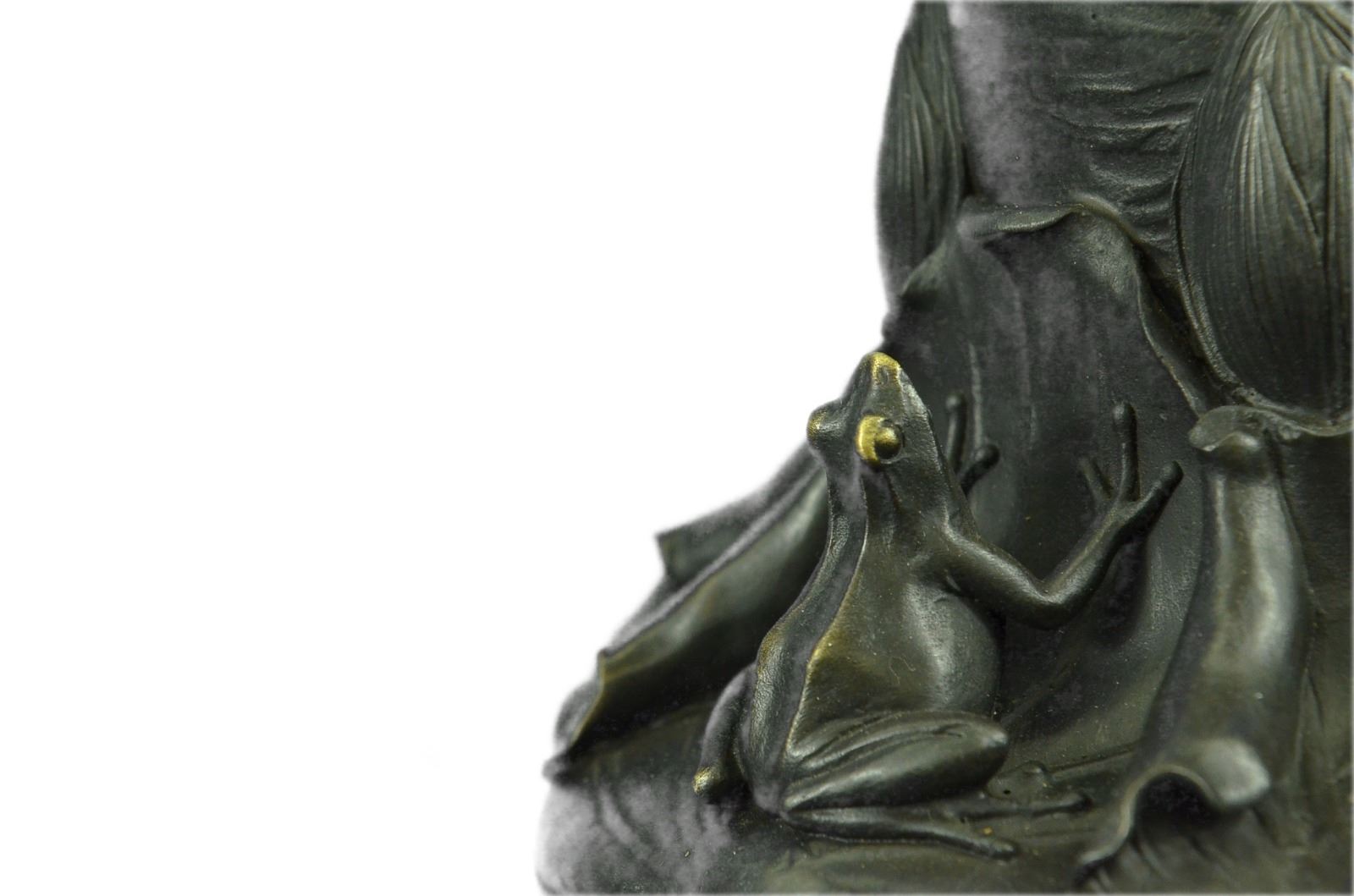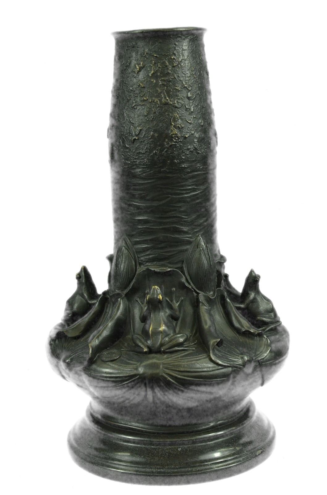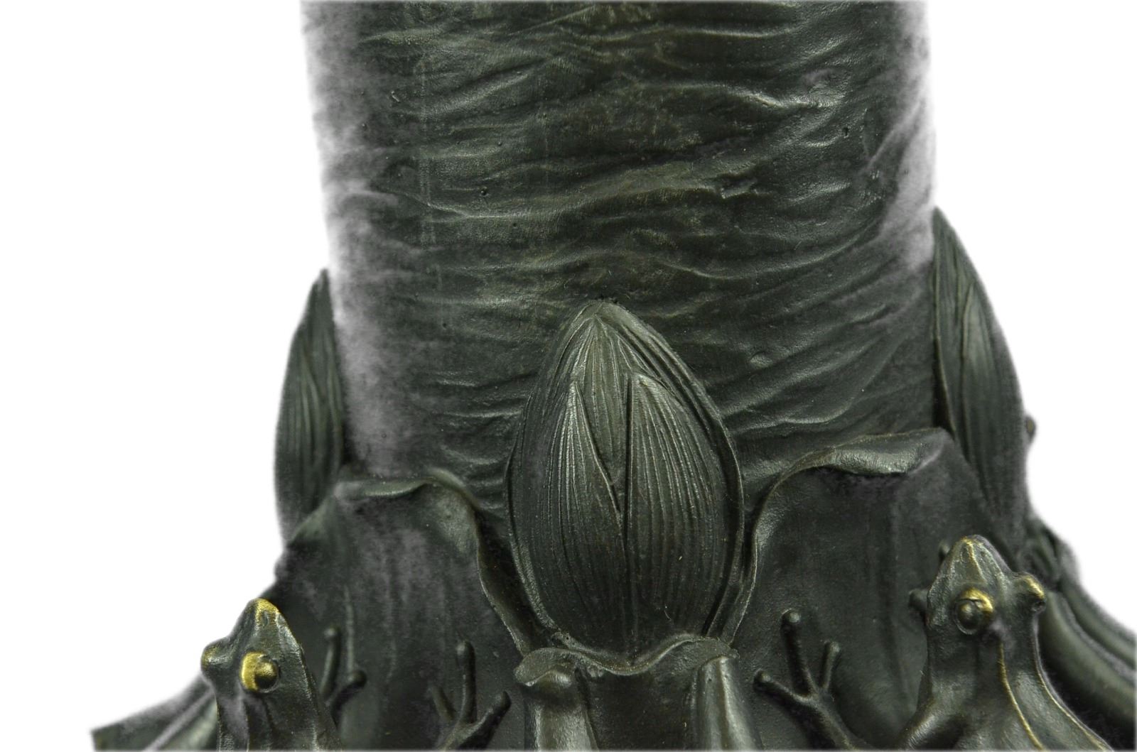 Here is a hand crafted European design pure bronze lotus leaf and frog statue brush pot vase and was created by skilled craftsmen in traditional style with fine handcrafts. This is a great piece of valuable collection, a valuable personal alter or a very good present. The handwork is very fine with incredible detailing. 100% bronze and handmade, this brown patina sculpture was cast using the lost wax method and mounted on a marble base. Bronze dimensions: Height 13 X Width 8 inches. Weight: 12 LBS. Inventory: 37EP6667573