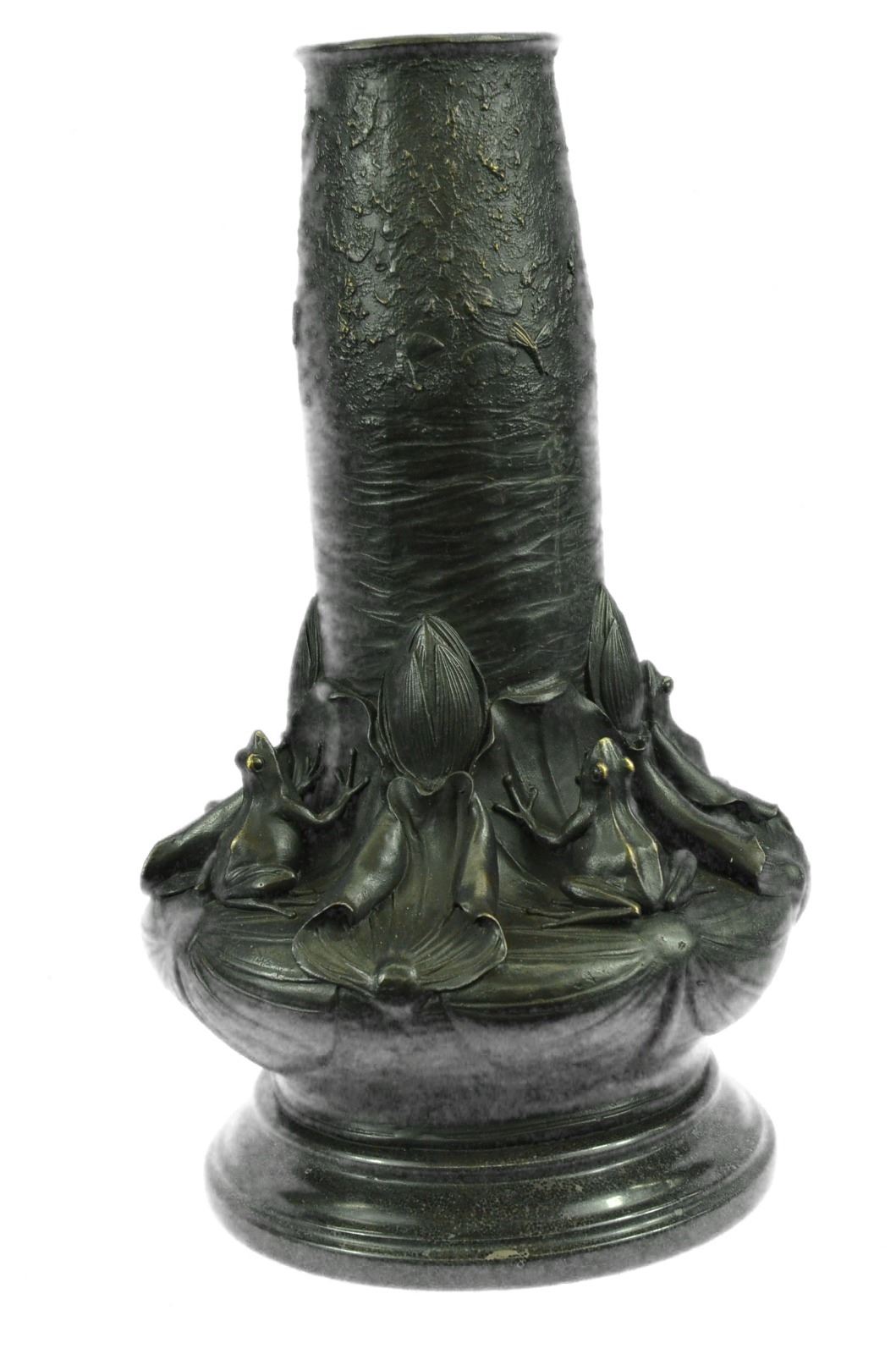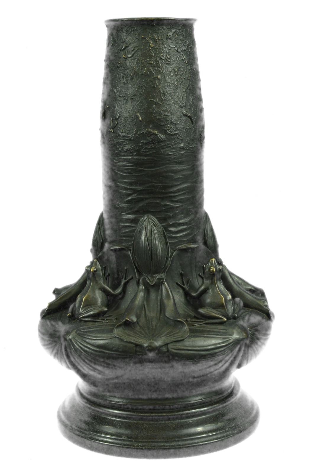 Here is a hand crafted European design pure bronze lotus leaf and frog statue brush pot vase and was created by skilled craftsmen in traditional style with fine handcrafts. This is a great piece of valuable collection, a valuable personal alter or a very good present. The handwork is very fine with incredible detailing. 100% bronze and handmade, this brown patina sculpture was cast using the lost wax method and mounted on a marble base. Bronze dimensions: Height 13 X Width 8 inches. Weight: 12 LBS. Inventory: 37EP6667573