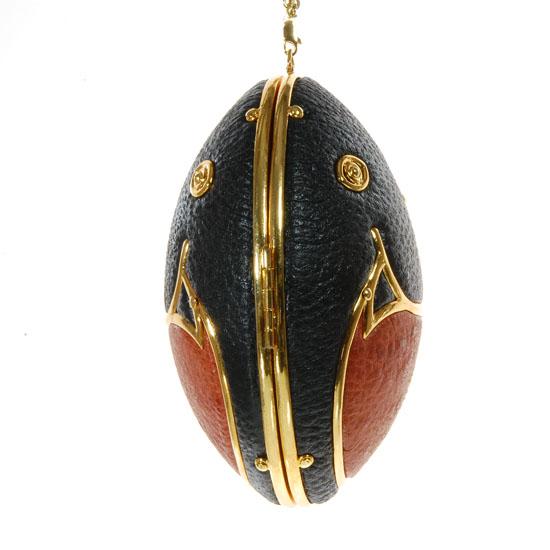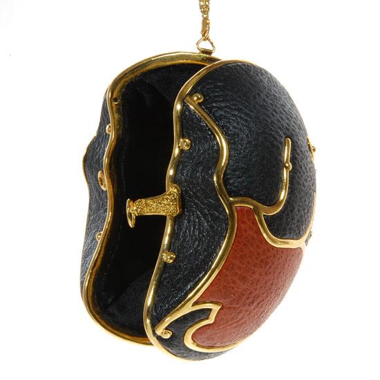 Unique parrot shaped clutch handbag made of ostrich egg shell. With gilded hardware and ostrich hide. Crafted in the shape of a parrot . Sturdy, built to last and a truly useable, collectible accoutrement. 6"
