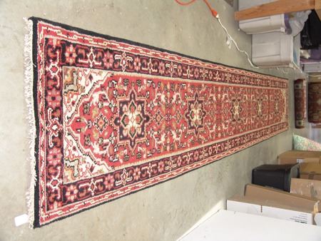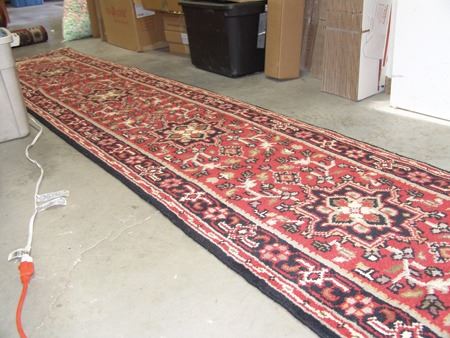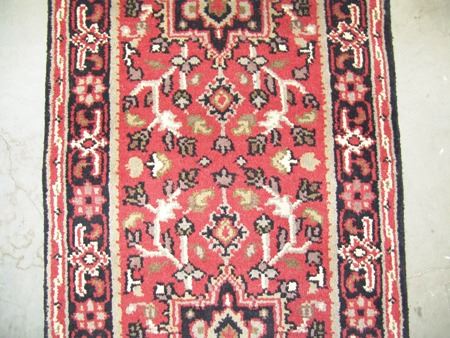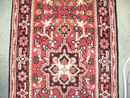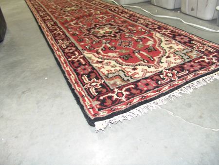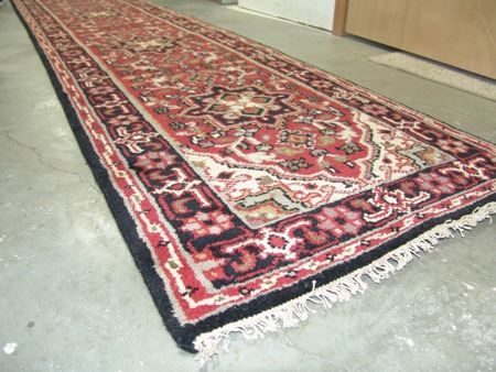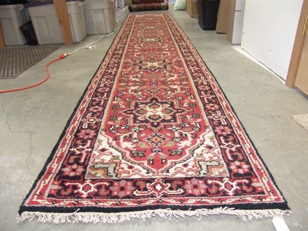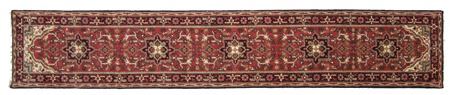 Semi-Antique, Popular hand-knotted all wool runner-sized maroon "Heriz" type carpet. Very good condition. 2' 6" x 14' 7"