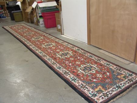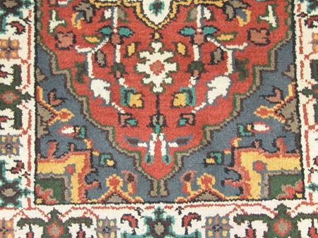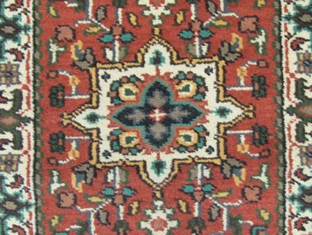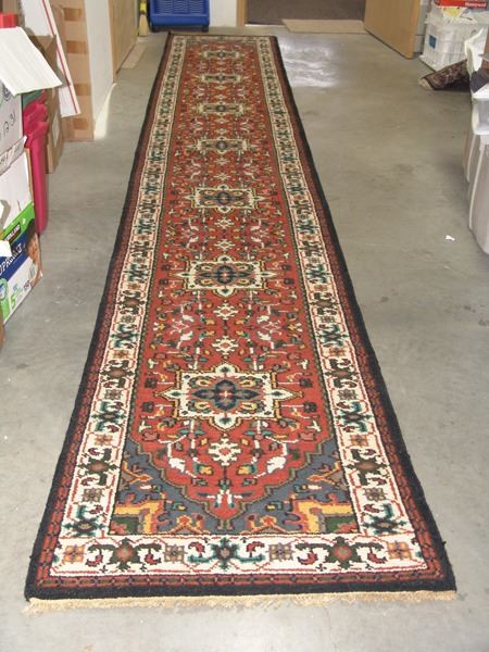 Mid/Late 1900s, Colorful handwoven all-wool "Heriz" runner done in rich traditional colors. Made in India. Very good, used condition. 2' 7" x 15' 7"