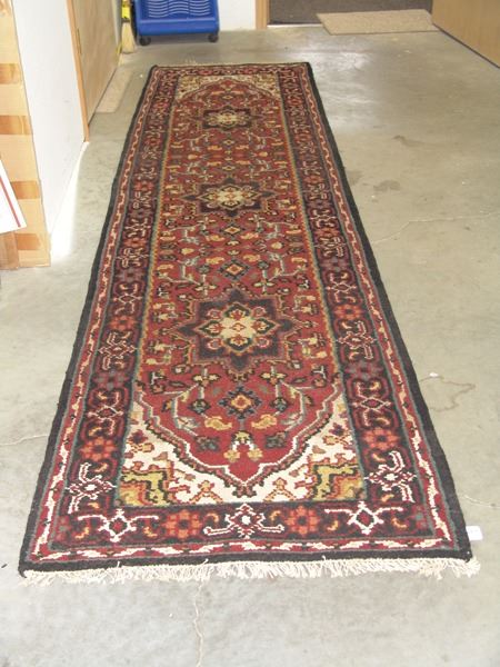 Mid/Late 1900s, Colorful handwoven all-wool "Heriz" runner done in rich traditional colors. Made in India. Very good, used condition. 2' 7" x 10'