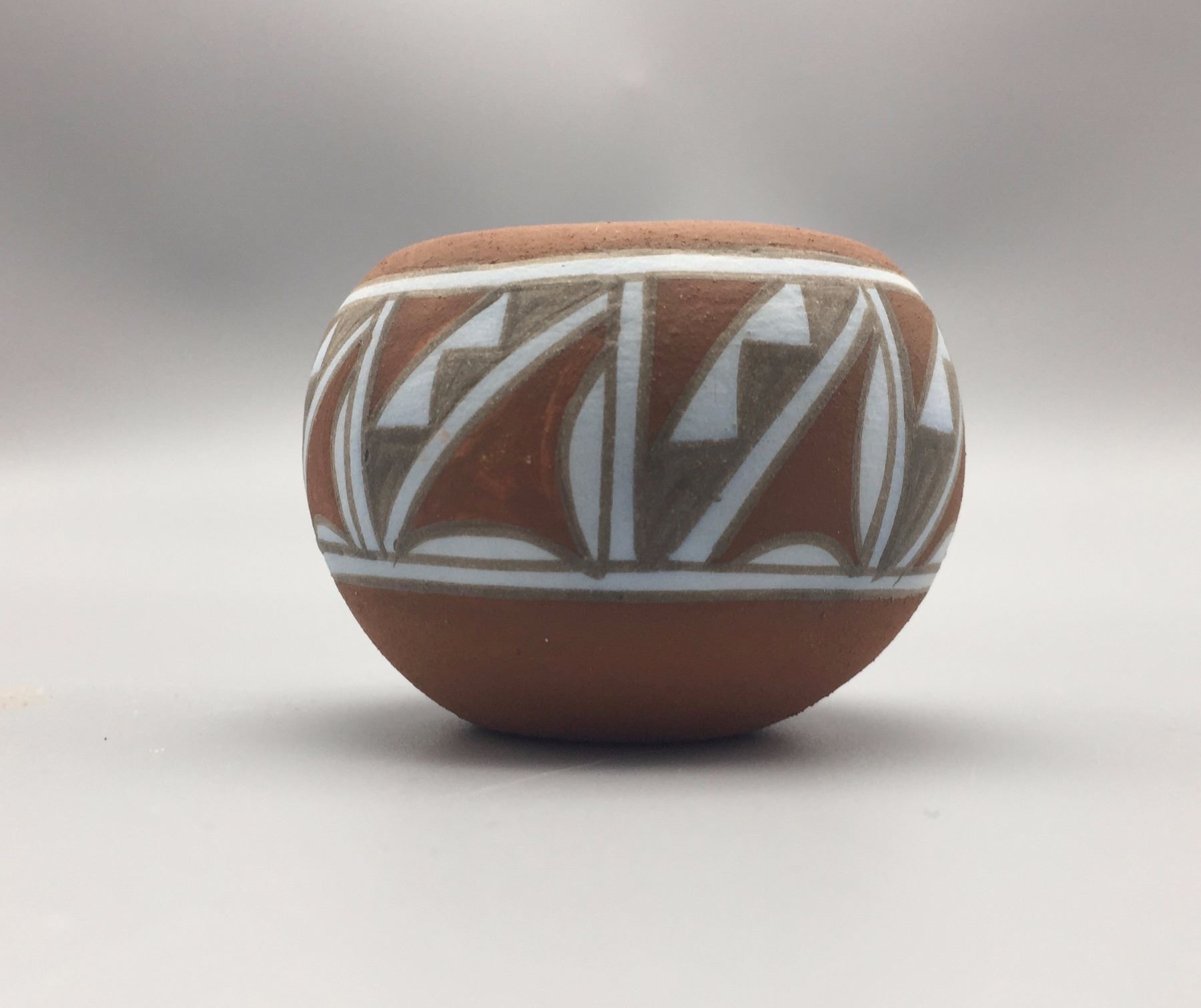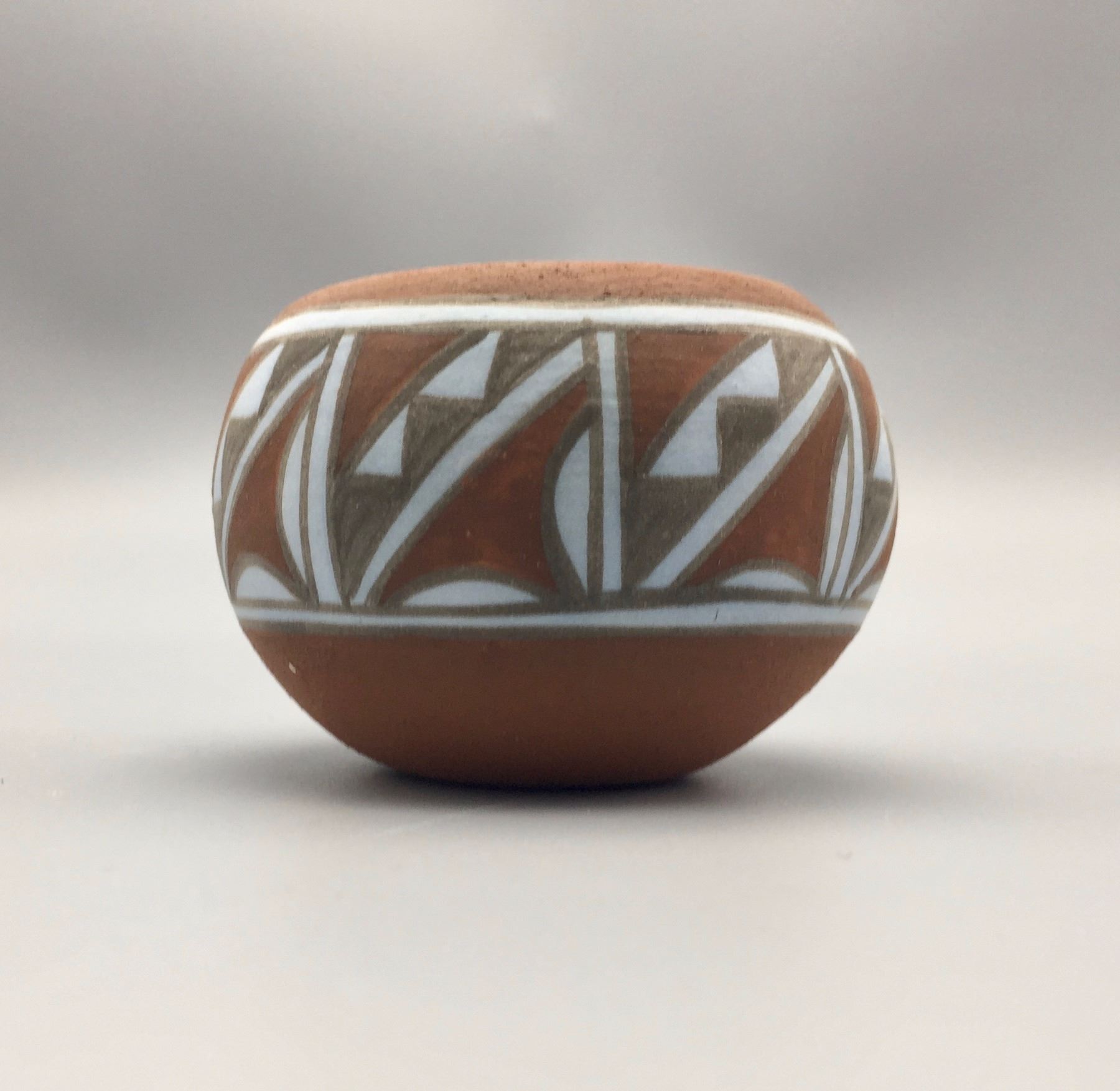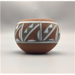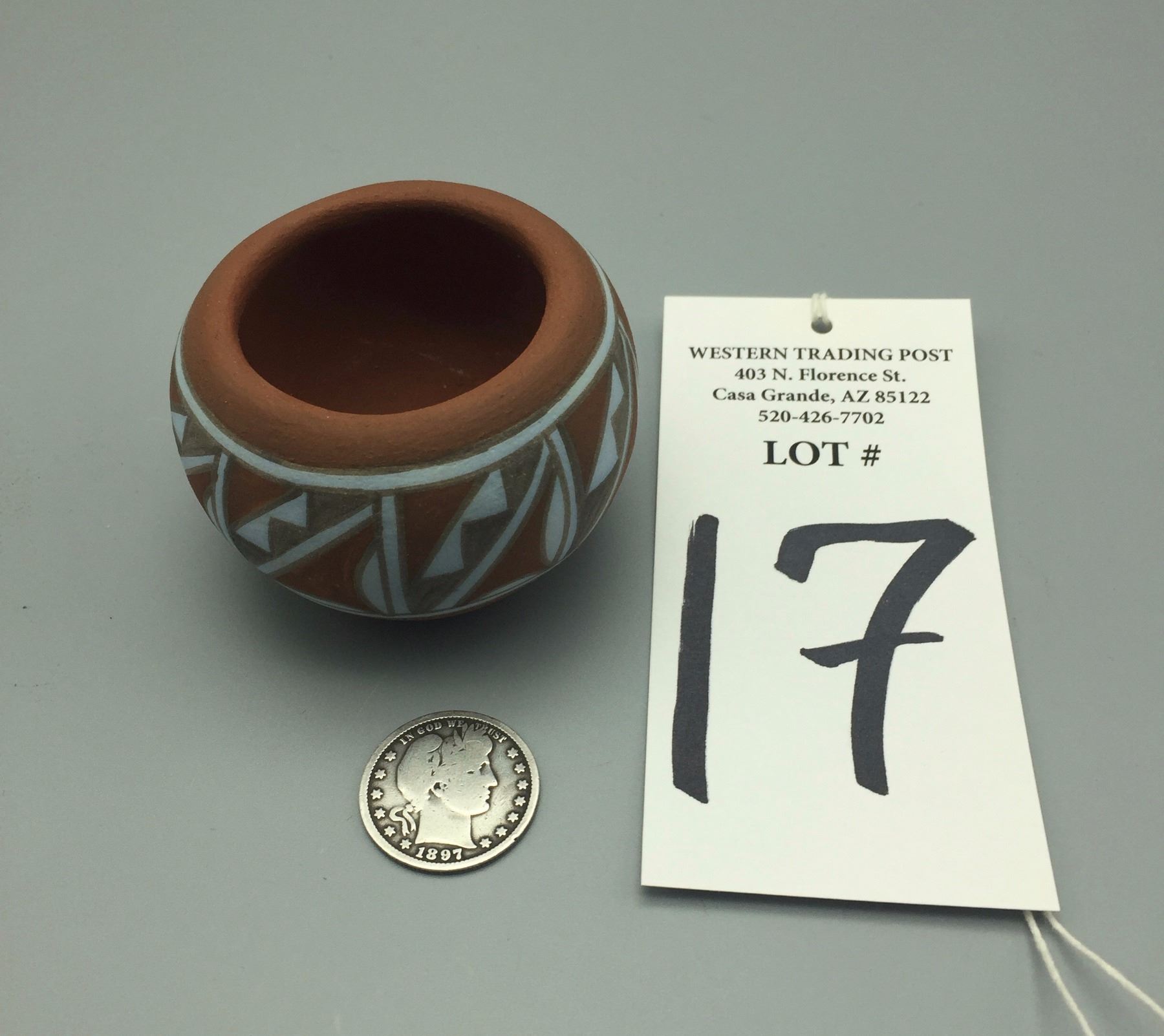 Maker: Mary Small. Approx. Age: Fairly modern. Size: Measures 2 5/8” w x 1 3/4” h. Additional Info: Handmade/hand-painted pot by the well-known potter, Mary Small. Condition: Good for its age, normal wear and fading expected. No cracks evident. Please look closely at the pictures - they are an important part of our description. Shipping: There will be a $7 handling / packaging fee for shipping this lot. The actual cost of postage will be added on top of that.