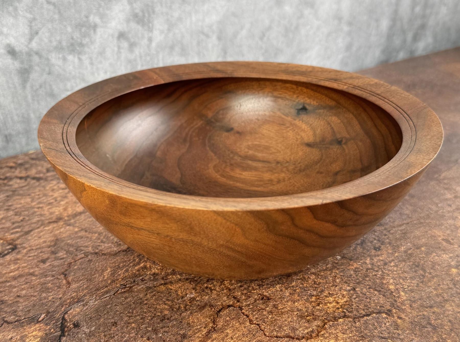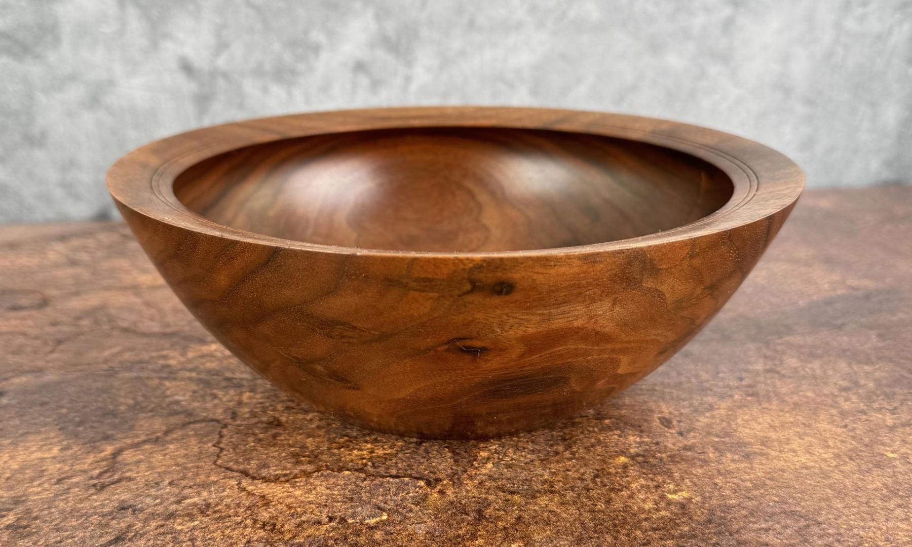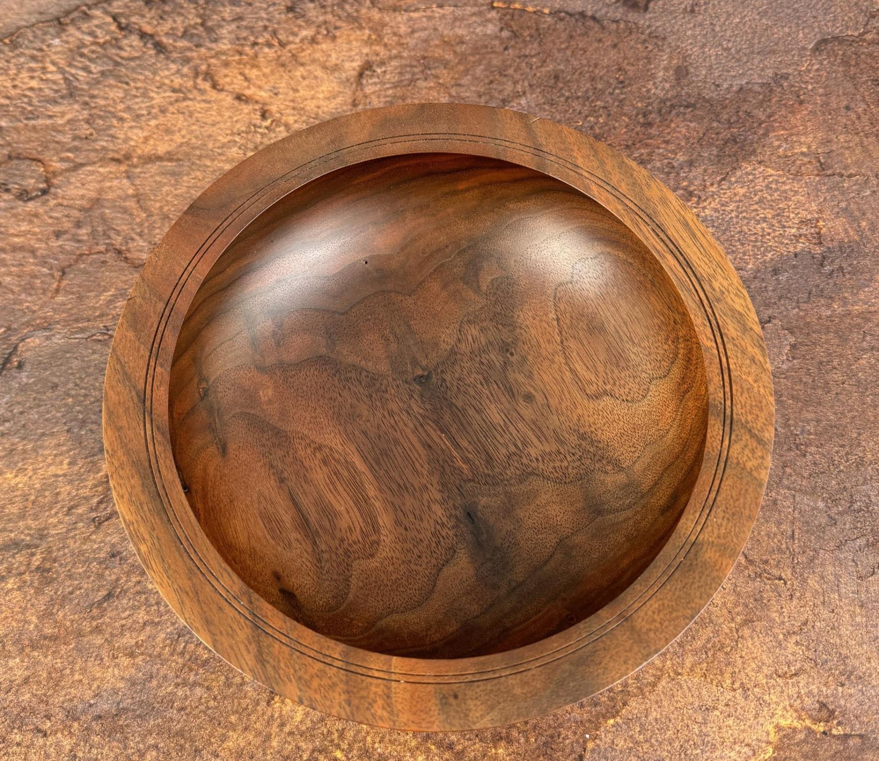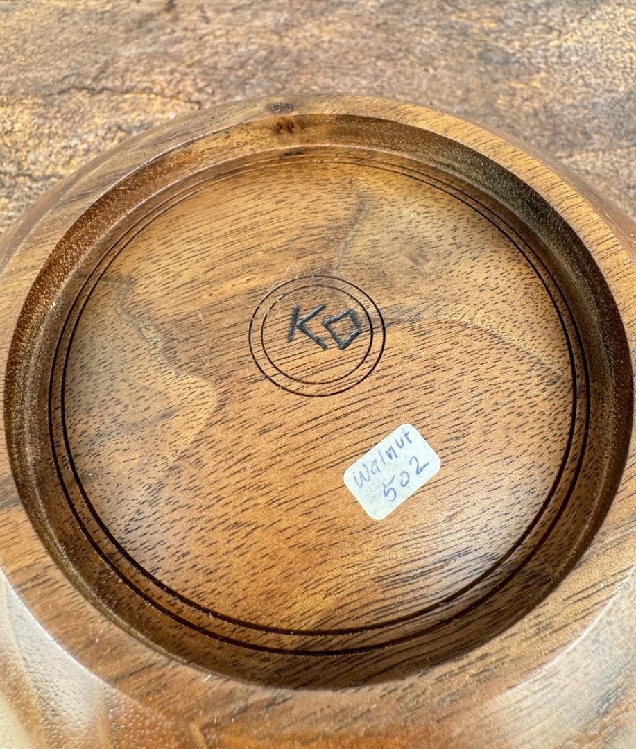 8 1/8" in diameter, 2 7/8" tall. Signed KO.
