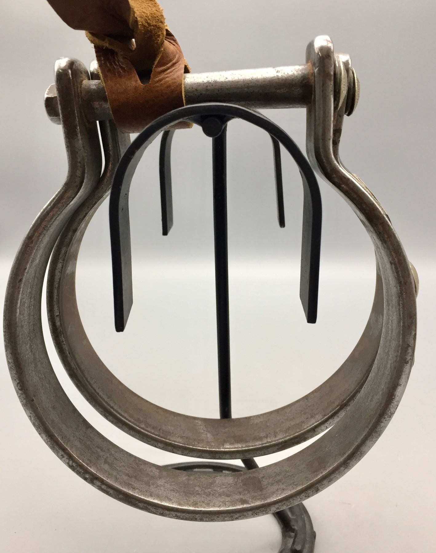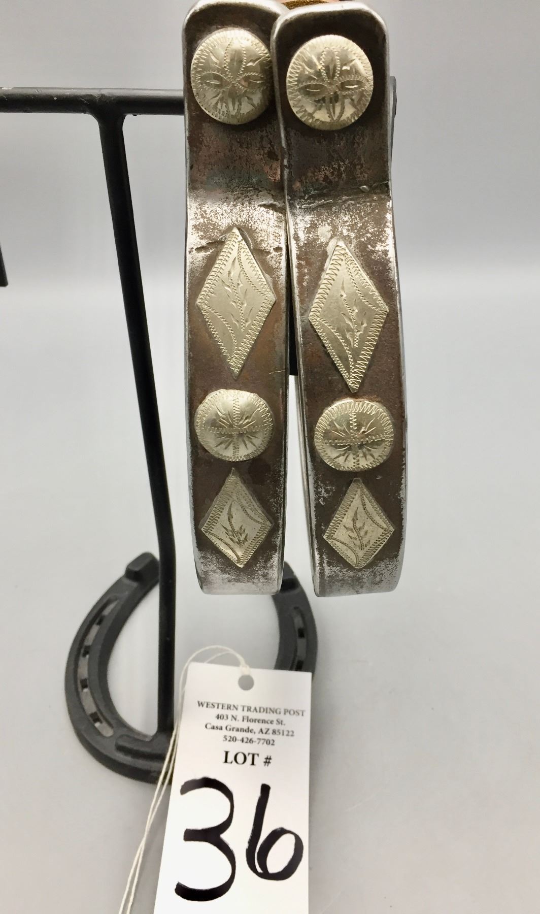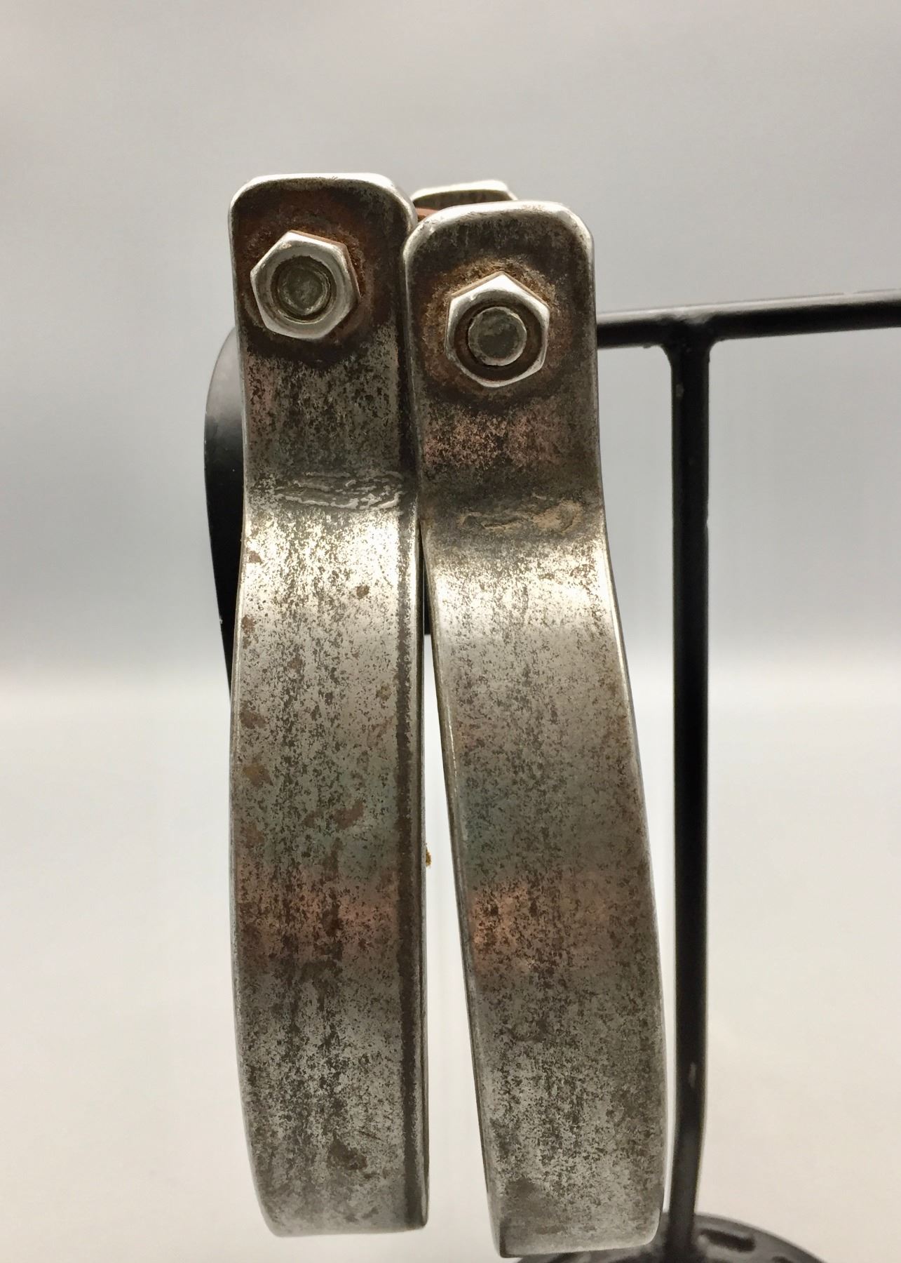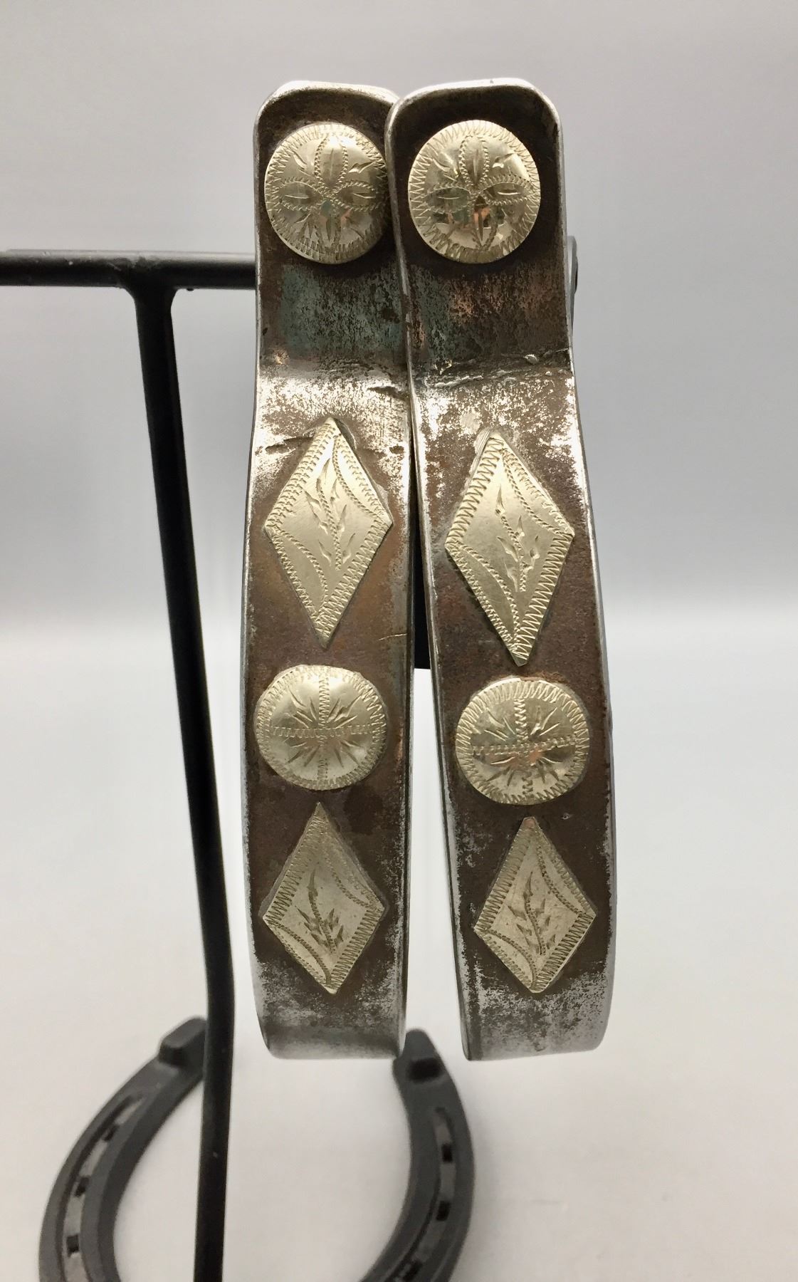 Description: Offered for sale in this lot is a pair of handmade, silver mounted, Oxbow stirrups in nice condition. Maker: Unknown.
