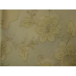 Handmade tablecloth and eight napkins. Ecru color with floral applique on very fine cotton. 60" x 8" cloth with 15" x 15" napkins. Lovely center panel on cloth. Condition: Good. A few faint marks on cloth. No holes or snags.