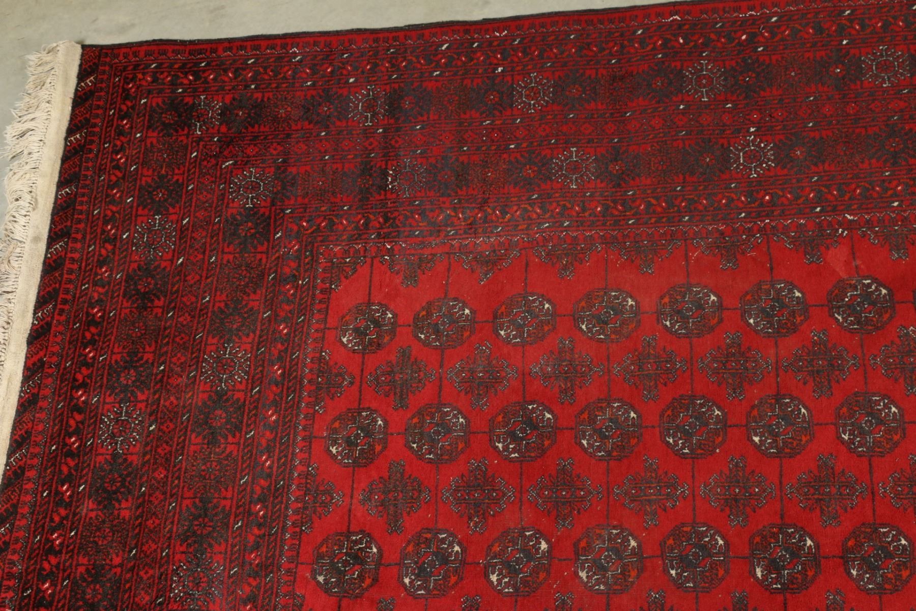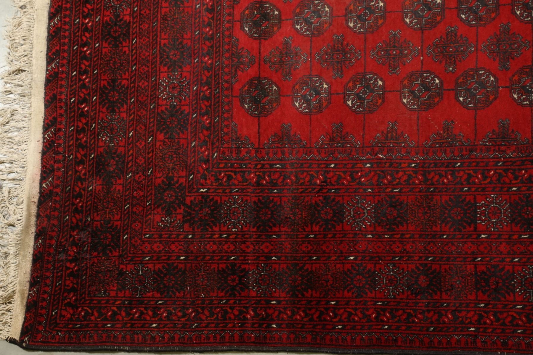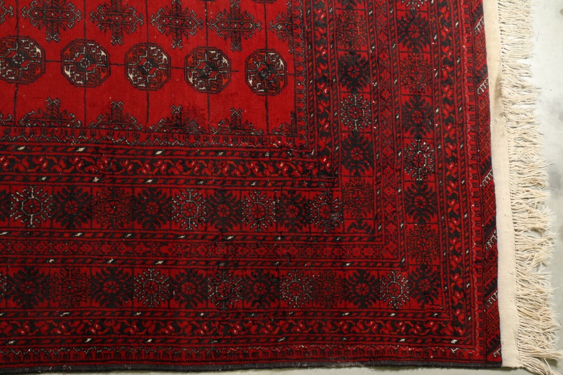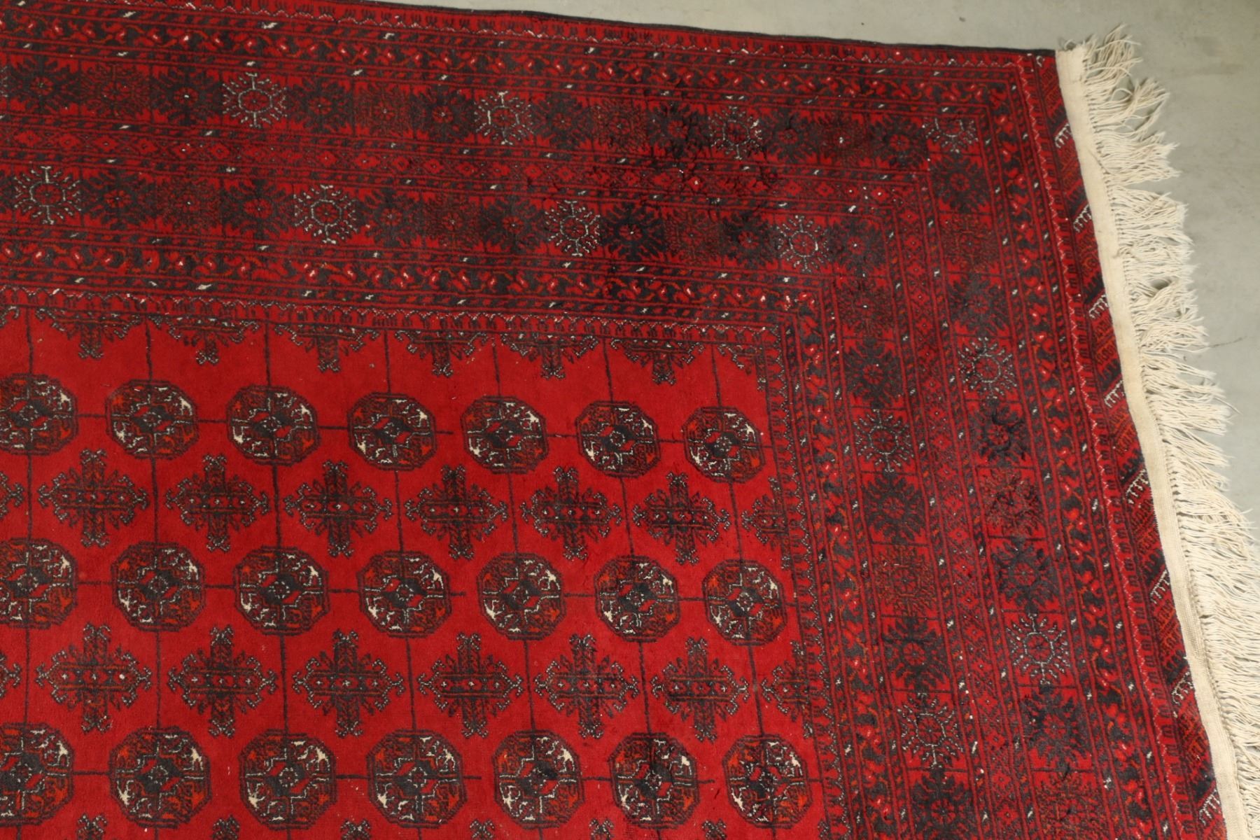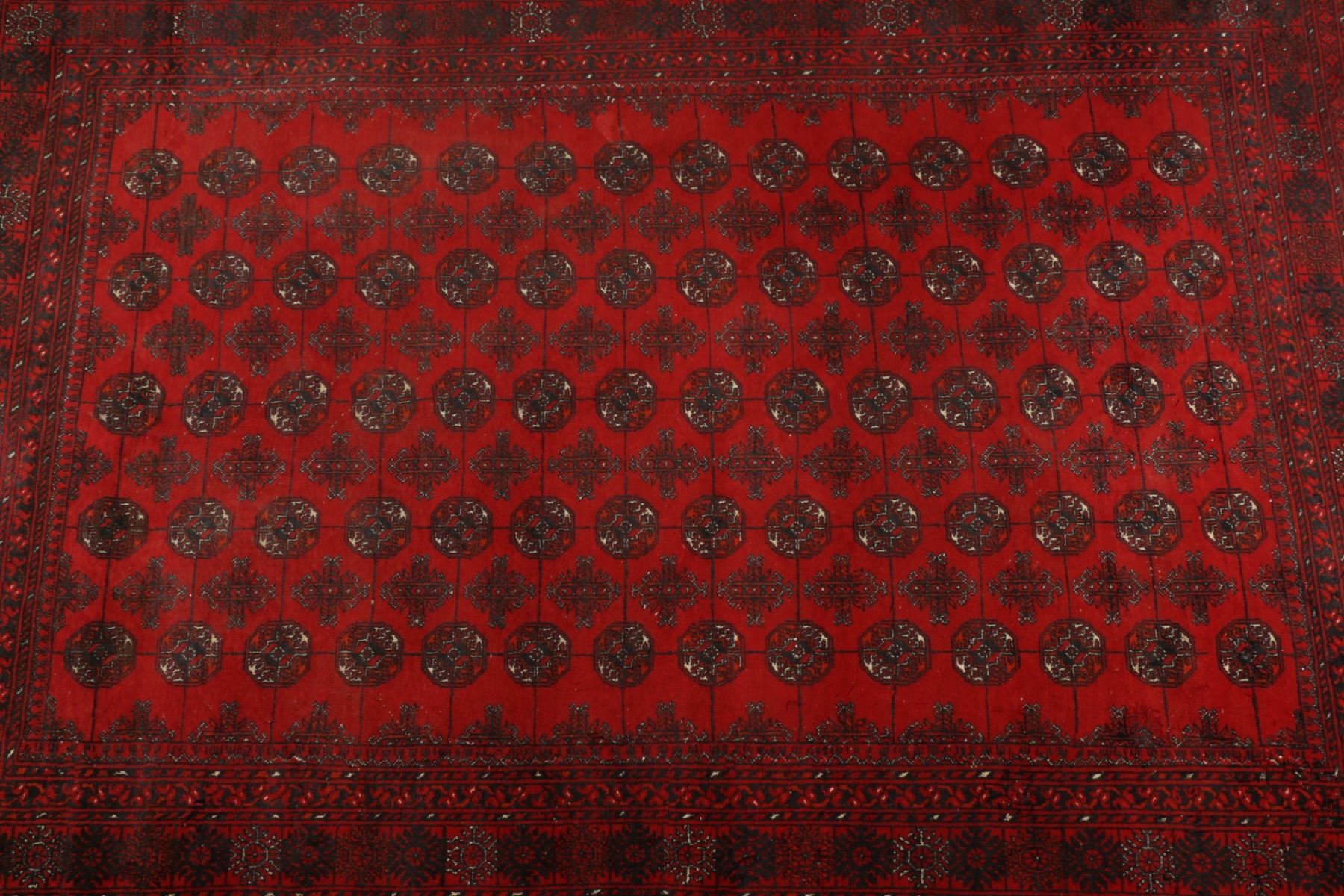 Lot 183 - Handmade North Afghanistan Turkoman with mauri gul. 145" x 98". Worn in places. $400-600.